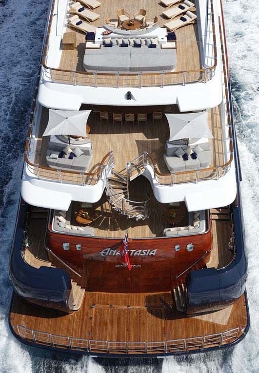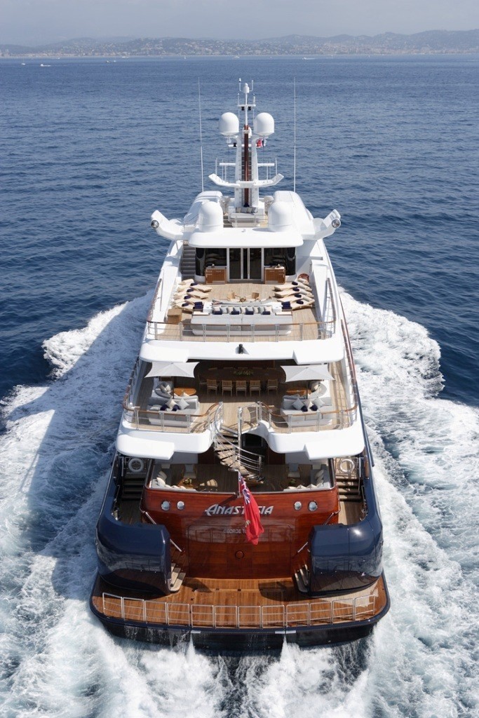 The majestic motor yacht ANASTASIA won the award for the "Best Custom Yacht over 40 metres” at the 2008 World Yacht Trophies. ANASTASIA is widely reported to belong to famous wealthy Russian who named the yacht after his daughter.