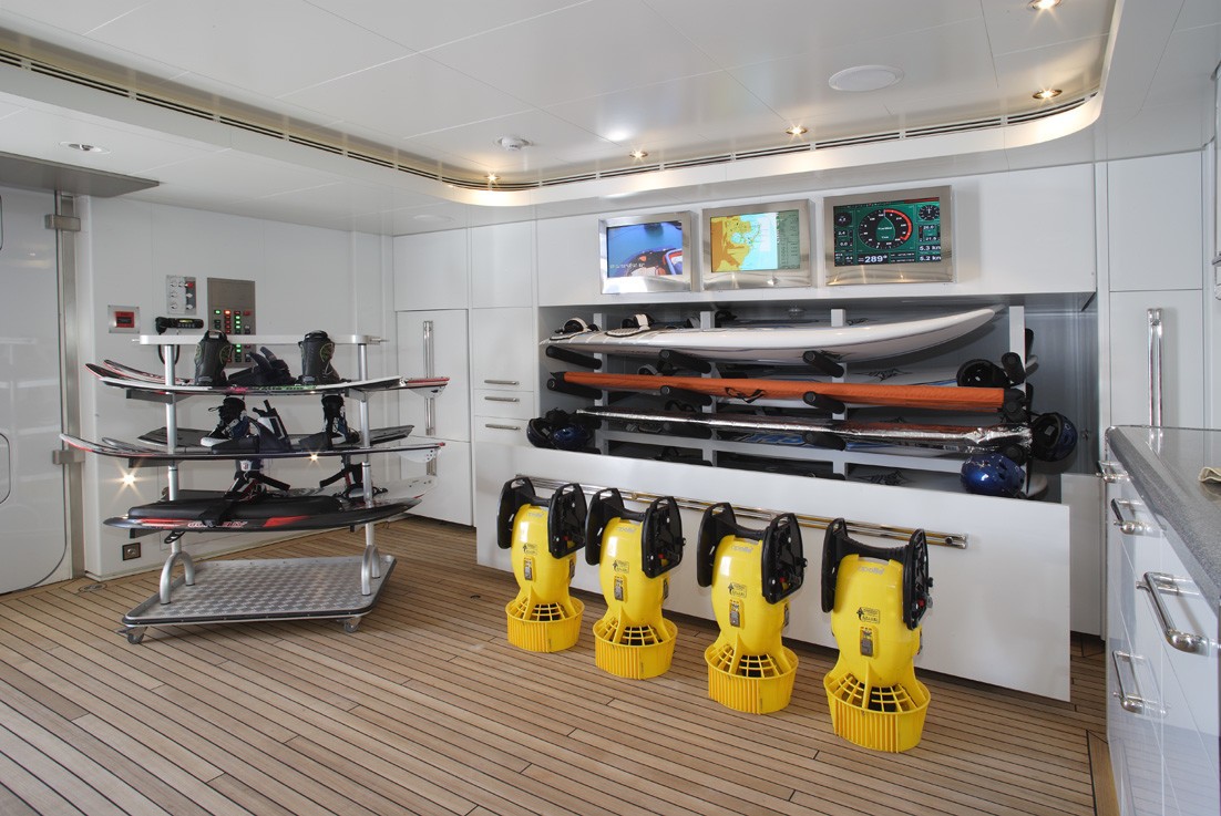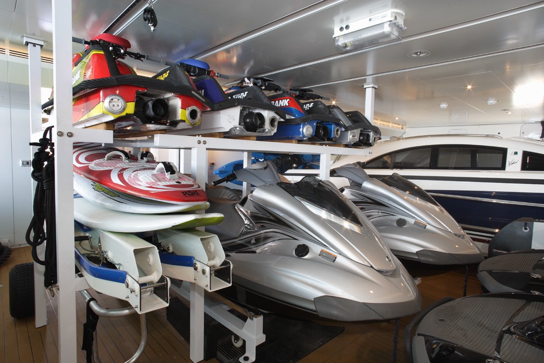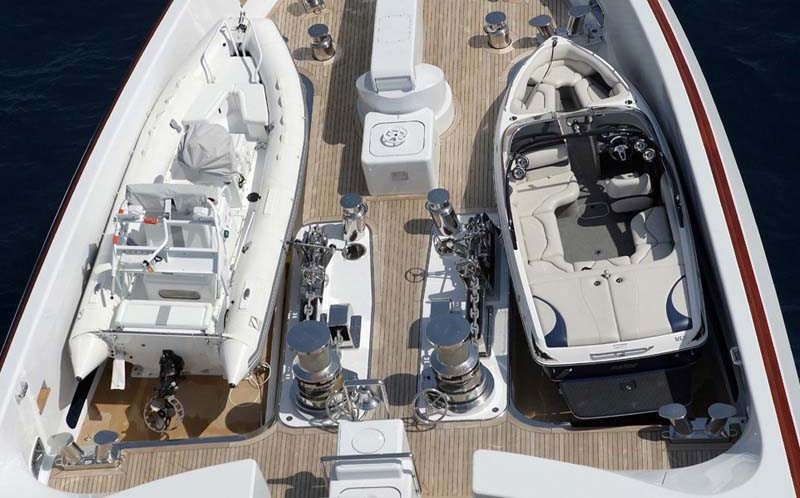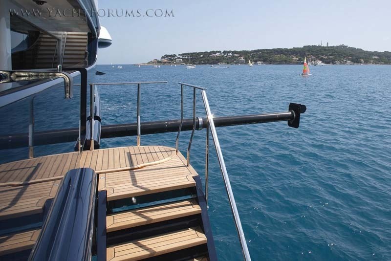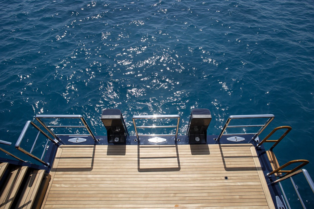 The 16V 4000 M90 engine installed in the motor yacht is produced by MTU. Her propulsion units are twin screw propellers. The main engine of the yacht generates 3650 horse power (or 2720 kilowatts). She is fitted with 2 engines. The combined output for the boat is thus 7300 HP or 5440 KW. With respect to stabalisers she uses Quantum Zero Speed 4 Fin.