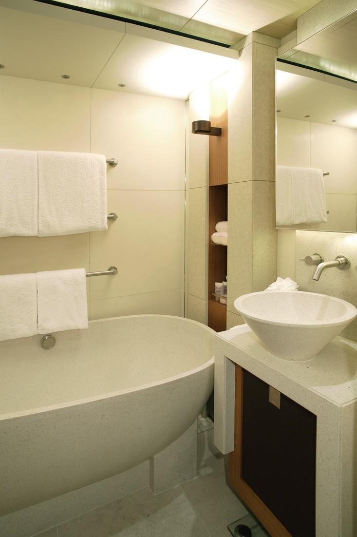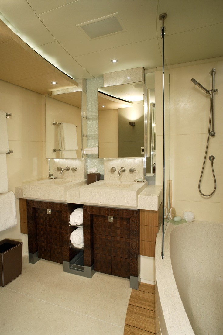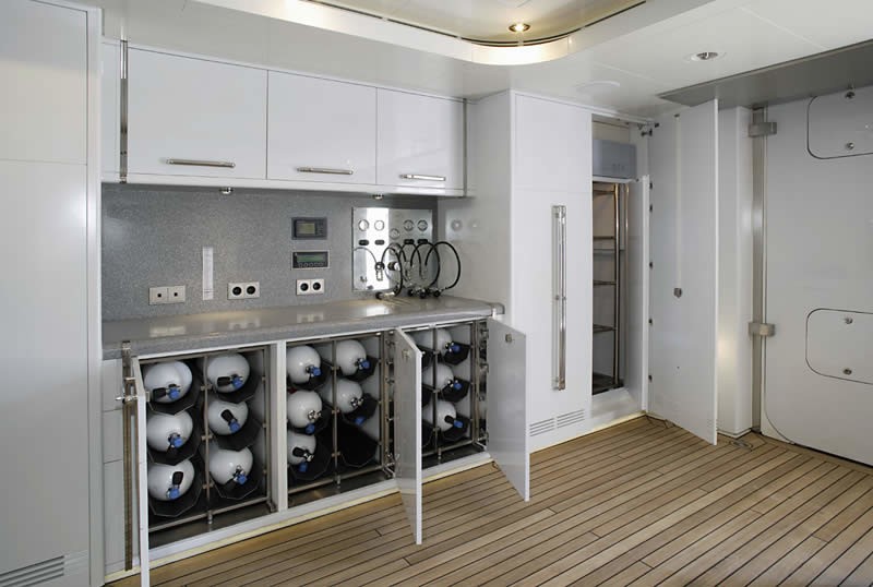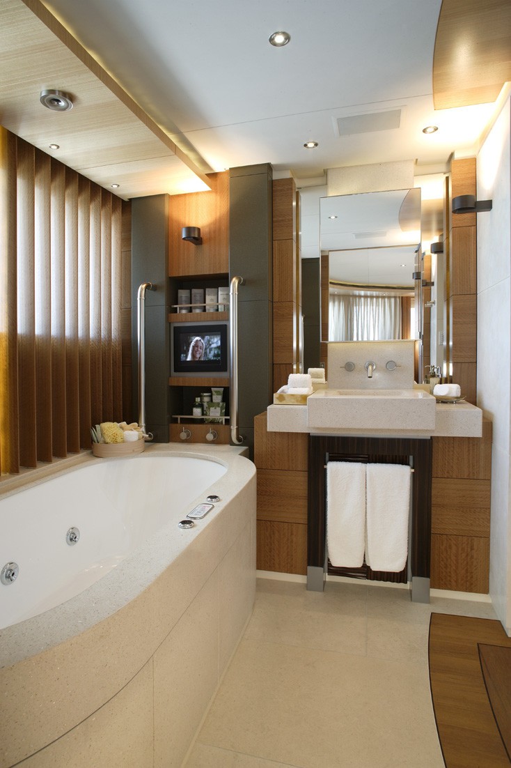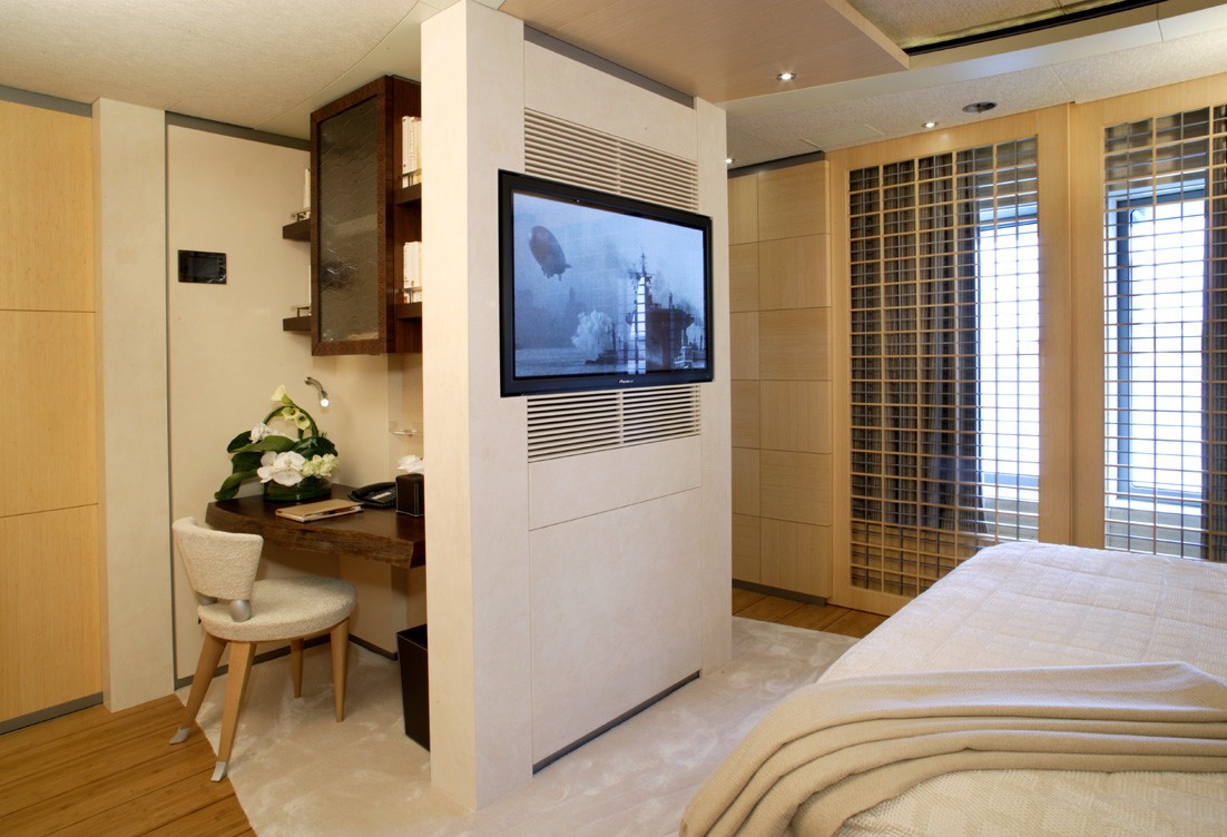 Oceanco & Azure was the naval architect involved in the formal superyacht plans for ANASTASIA. Also the company Oceanco & Azure and Sam Sorgiovanni expertly collaborated on this project. Interior designer Sam Sorgiovanni was commissioned for the internal interior ambience. the Netherlands is the country that Oceanco Yachts (Alblasserdam Yachtbuilding) completed their new build motor yacht in. After her official launch in 2008 in Alblasserdam the boat was delivered on to the owner following sea trials and testing. The main hull was built out of steel. The motor yacht superstructure is fabricated extensively from aluminium. With a width of 13.47 metres or 44.19 feet ANASTASIA has beamy room. A deep draught of 3.86m (12.66ft) limits the number of ports she can visit, depending on their specific depth at low tide.