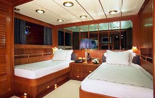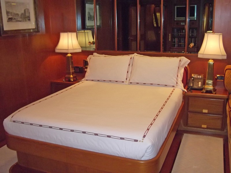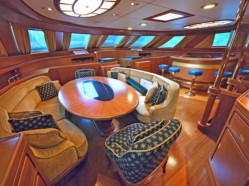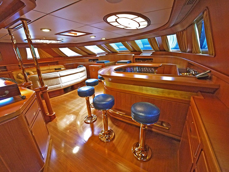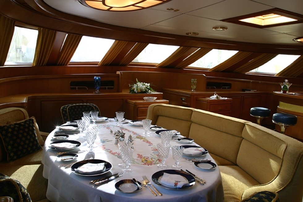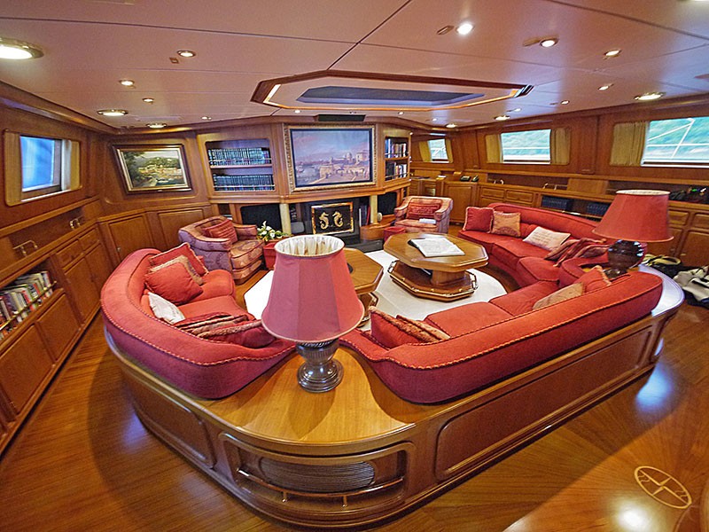 This ship has twin MTU diesel engine(s) and can manage a industrious maximum limit continuous speed of around 15 knots. The main engine of the yacht creates 600 horse power (or 442 kilowatts). Her total HP is 1200 HP and her total Kilowatts are 883. Coupled to the ANDROMEDA LA DEA engines are twin screw propellers. As for thrusters she was fitted with Schottel. The boat’s comparatively good cruising speed is 14 knots which offers a range of 4000.