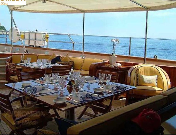 Around October 2009 ANDROMEDA LA DEA cruised to Lipari, in Italy. ANDROMEDA LA DEA also navigated the cruising ground near Provincia di Messina during October 2009. Condaria is the model of AC employed to regulate the temperature. This sailing yacht has a teak deck.