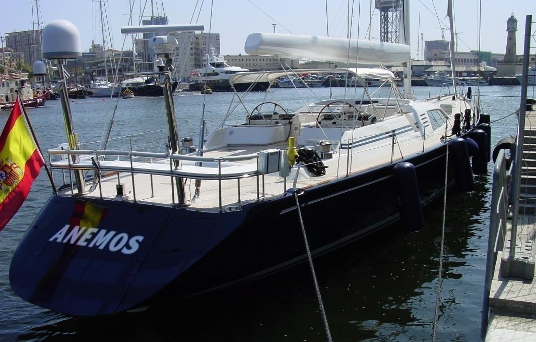 German Frers was the naval architect firm involved in the formal superyacht design work for ANEMOS. Also the company German Frers skillfully worked on this venture. Interior designer Nauta Yachts / The A Group was selected for the internal internal styling. Built at Oy Nautor Ab (Nautors Swan) the vessel was fabricated in the known yacht building country Finland. She was officially launched in Pietersaari in 1999 before being delivered to the owner. A moderate area is manifested with a widest beam (width) of 7.42 m / 24.3 feet. With a 4.4m (14.4ft) draught (maximum depth) she is fairly deep. The material composite was used in the building of the hull of the sailing yacht. Her superstructure above deck is fashioned out of composite. In 2006 further refit work and updating was in addition finished.