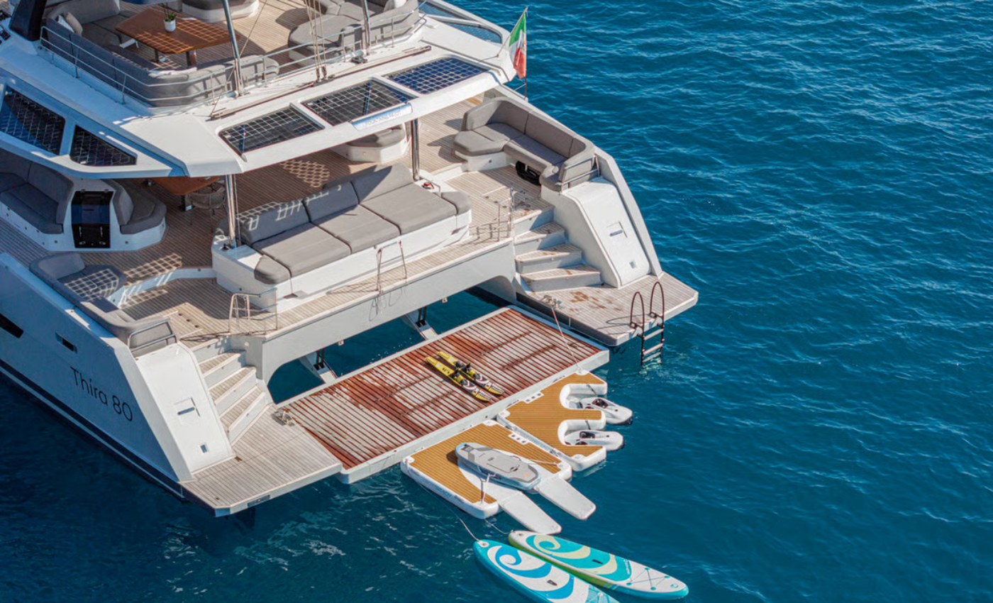 Tenders & Toys: ~10 x Snorkeling sets ~3 x SEABOB F9 (white) ~2 x Stand-up paddle boards (SUP) ~2 x Floating mats ~2 x Underwater cameras ~1 x Kayak ~1 x YachtBeach platform ~1 x E-foil ~1 x Water ski ~1 x Fishing equipment
