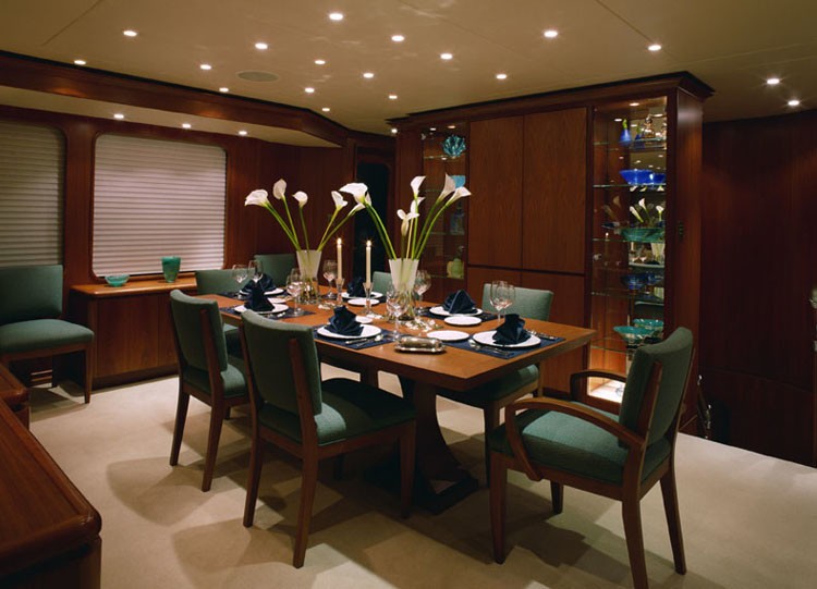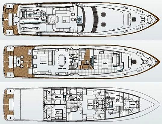 Don O'keeffe was the naval architect firm involved in the formal nautical plans for ANNE MARIE. Also the company Don O'keeffe skillfully collaborated on this venture. Interior designer Douglas Richey/Barbara Benson was selected for the overall internal ambience. In 2002 she was actually launched to triumph in Manitowoc Wi and post sea trials and final completion was thereafter delivered to the owner. Burger Boats completed their new build motor yacht in the United States. Her hull was built out of aluminium. The motor yacht superstructure is fabricated largely from aluminium. With a beam of 7 metres or 23 ft ANNE MARIE has moderate internal space. She has a fairly shallow draught of 1.5m (4.92ft).