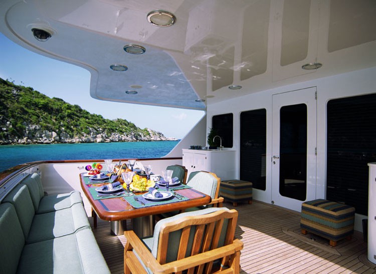 Marine Air is the firm that installed the A/C on the yacht. She has a teak deck.