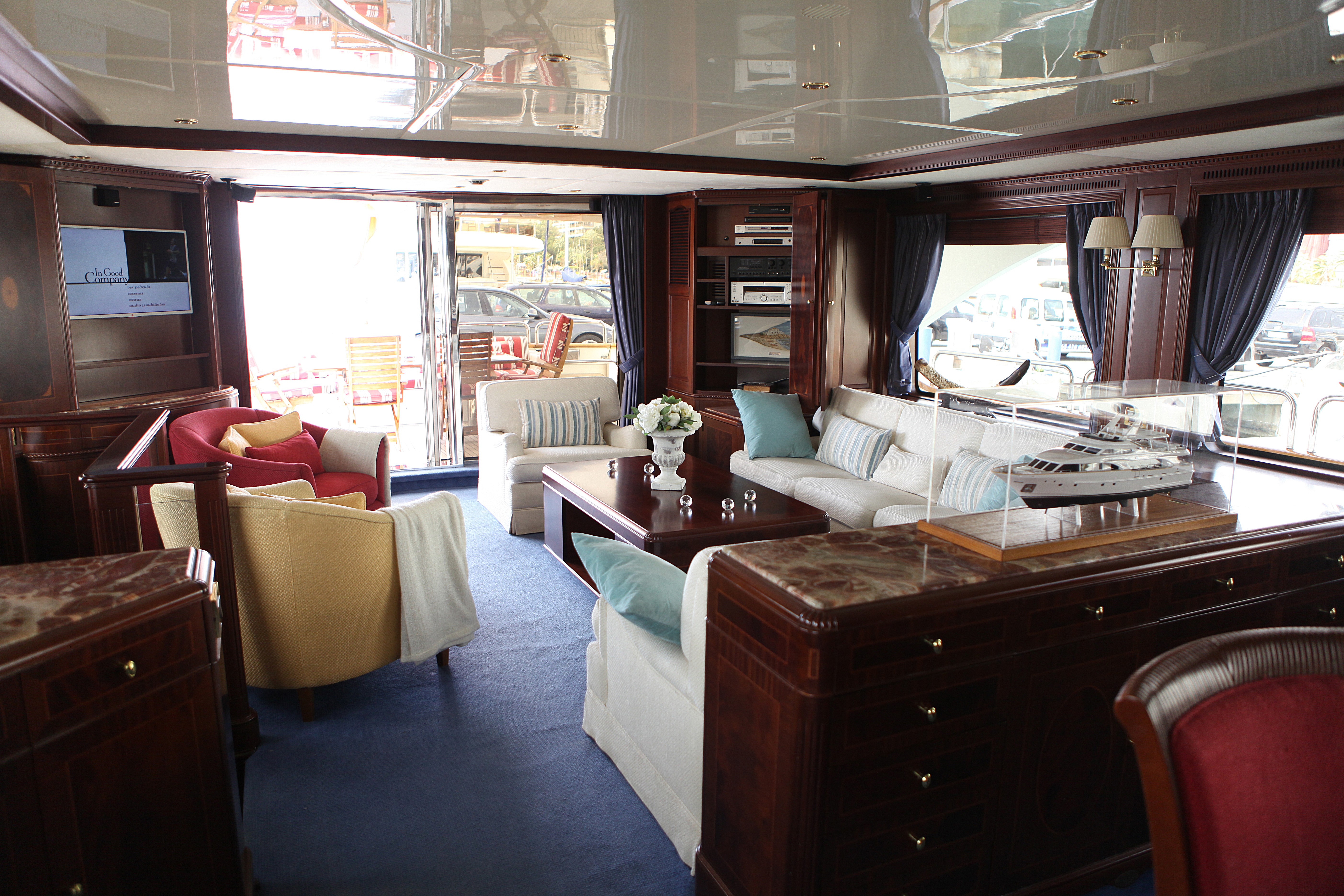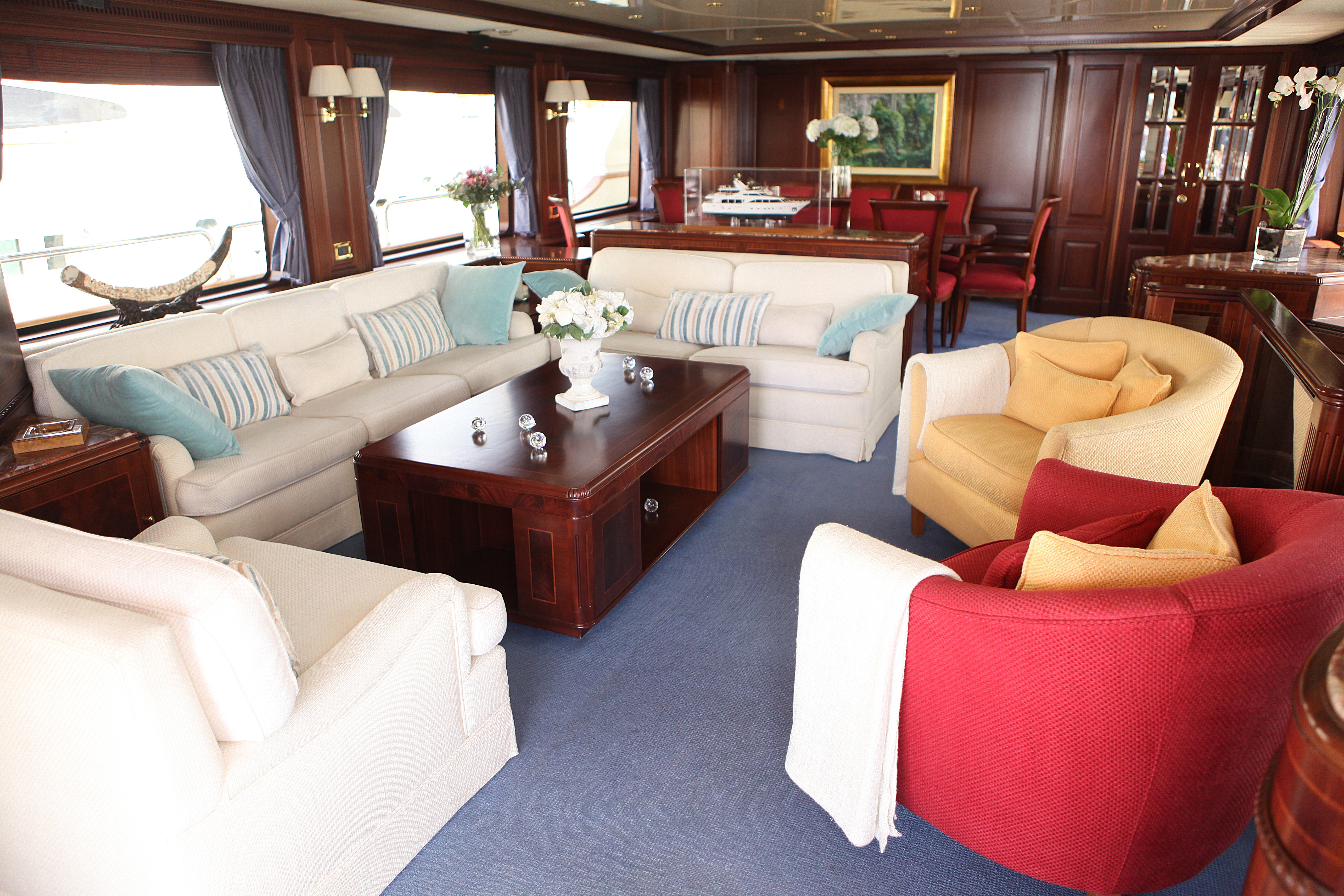 Powered by two MTU diesel main engines, ANYPA is able to reach a high speed of 18 knots. She is driven by twin screw propellers. She also has an efficient range of 2100 miles when sailing at her cruise speed of 16.5 knots. Her total HP is 2740 HP and her total Kilowatts are 2014. With respect to thrusters she was built with Vosper. As for the yacht’s stabalisers she uses Vosper.