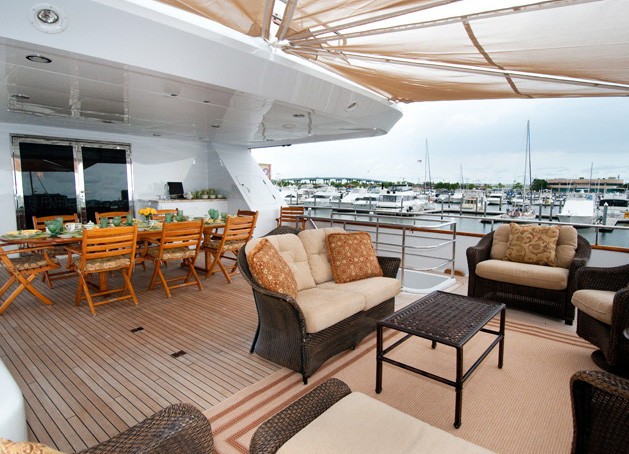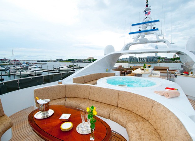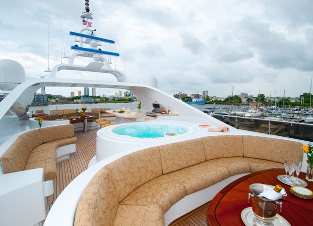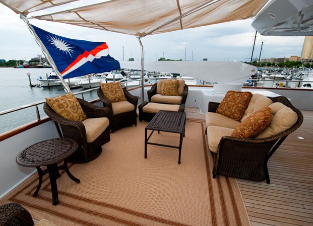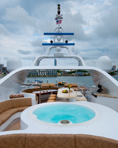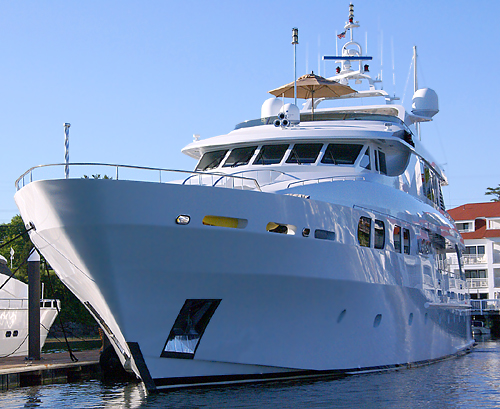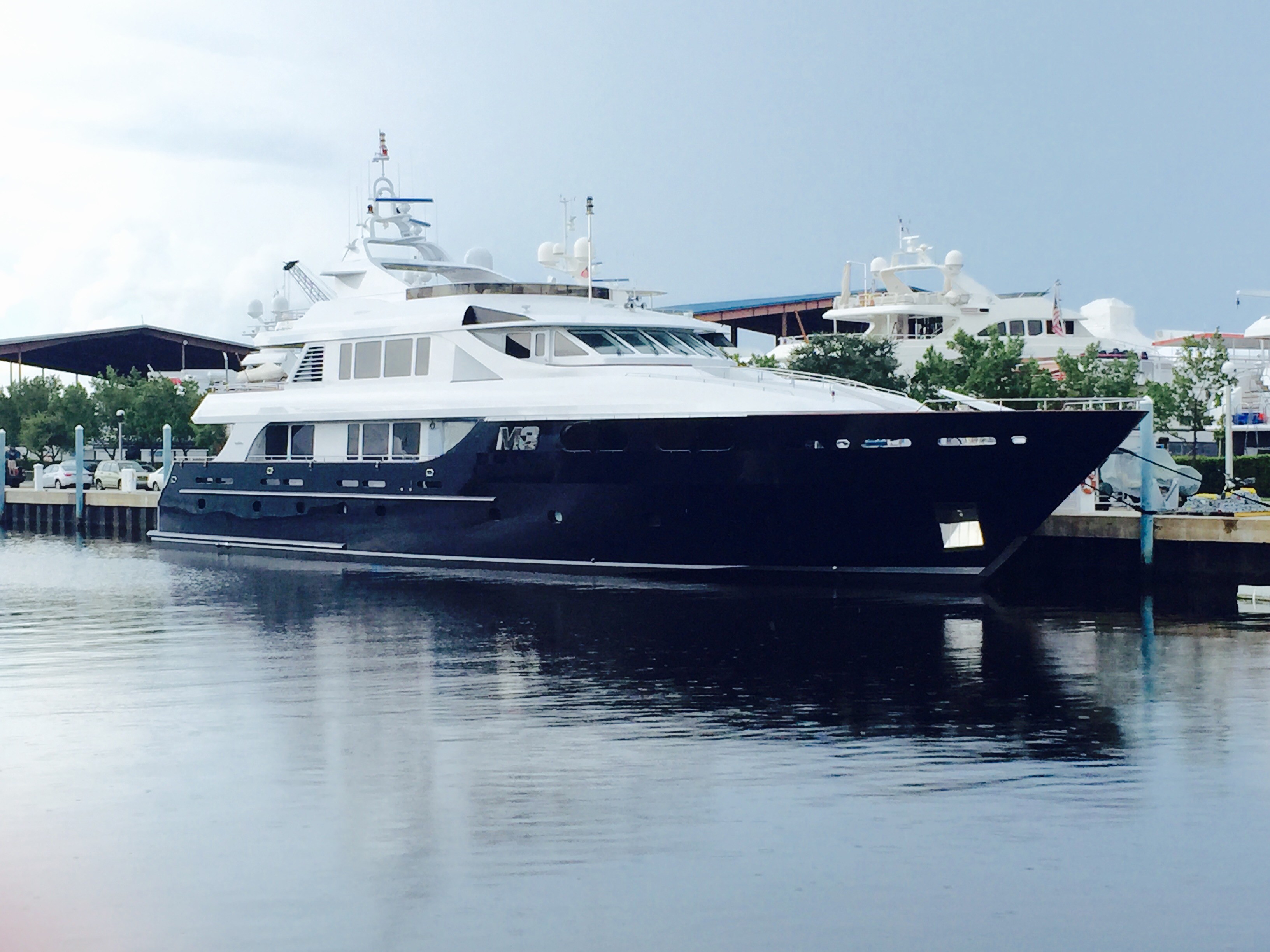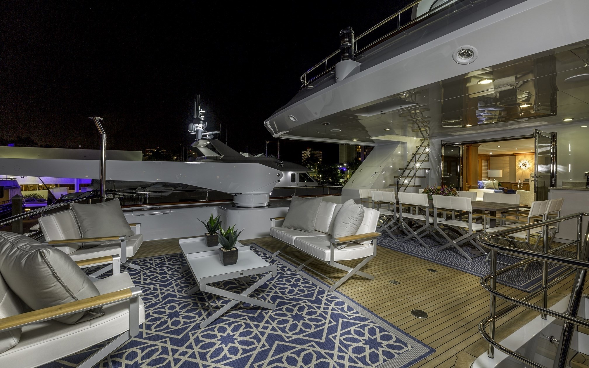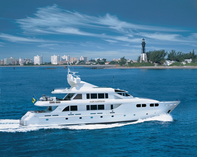 The yacht's wider design collaboration came from Intermarine and Luiz De Basto Designs. The technical naval architect plans are products of Intermarine. Motor Yacht AQUASITION received her elegant interior designing from the interior design skills of Luiz De Basto Designs / Ari Cross-Buchanan/Hansen & Associates. Created at Pj Savannah (Formerly Intermarine Savannah) the yacht was constructed in the known yacht building country, the United States. She was successfully launched in 2002 before being transferred to the owner. A fairly large feeling is manifested with a total beam (width) of 8.53 m or 28 ft. With a 2.16m (7.1ft) draught (maximum depth) she is reasonably shallow. The material composite was used in the building of the hull of the motor yacht. Her superstructure above deck is created from composite. In 2008 further refit work and updating was in addition finished.