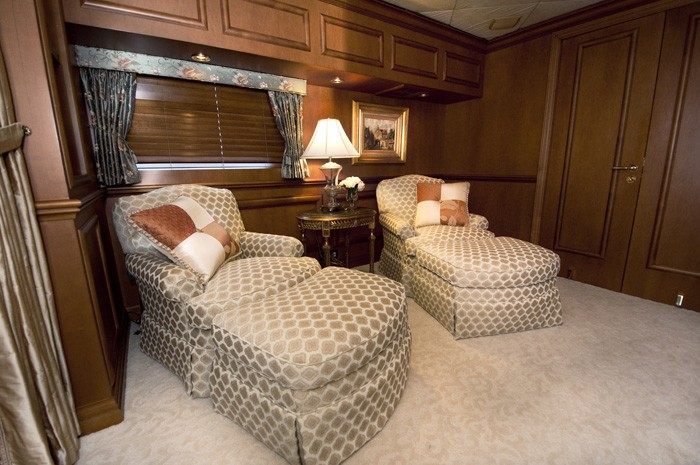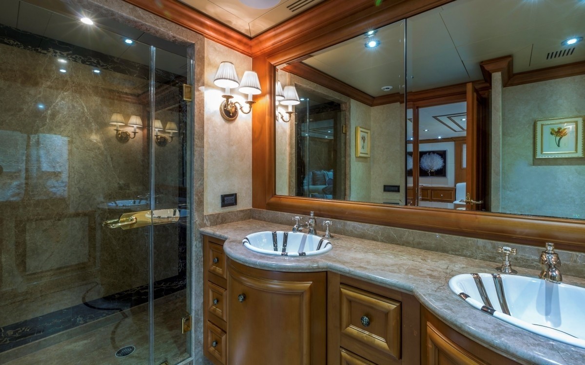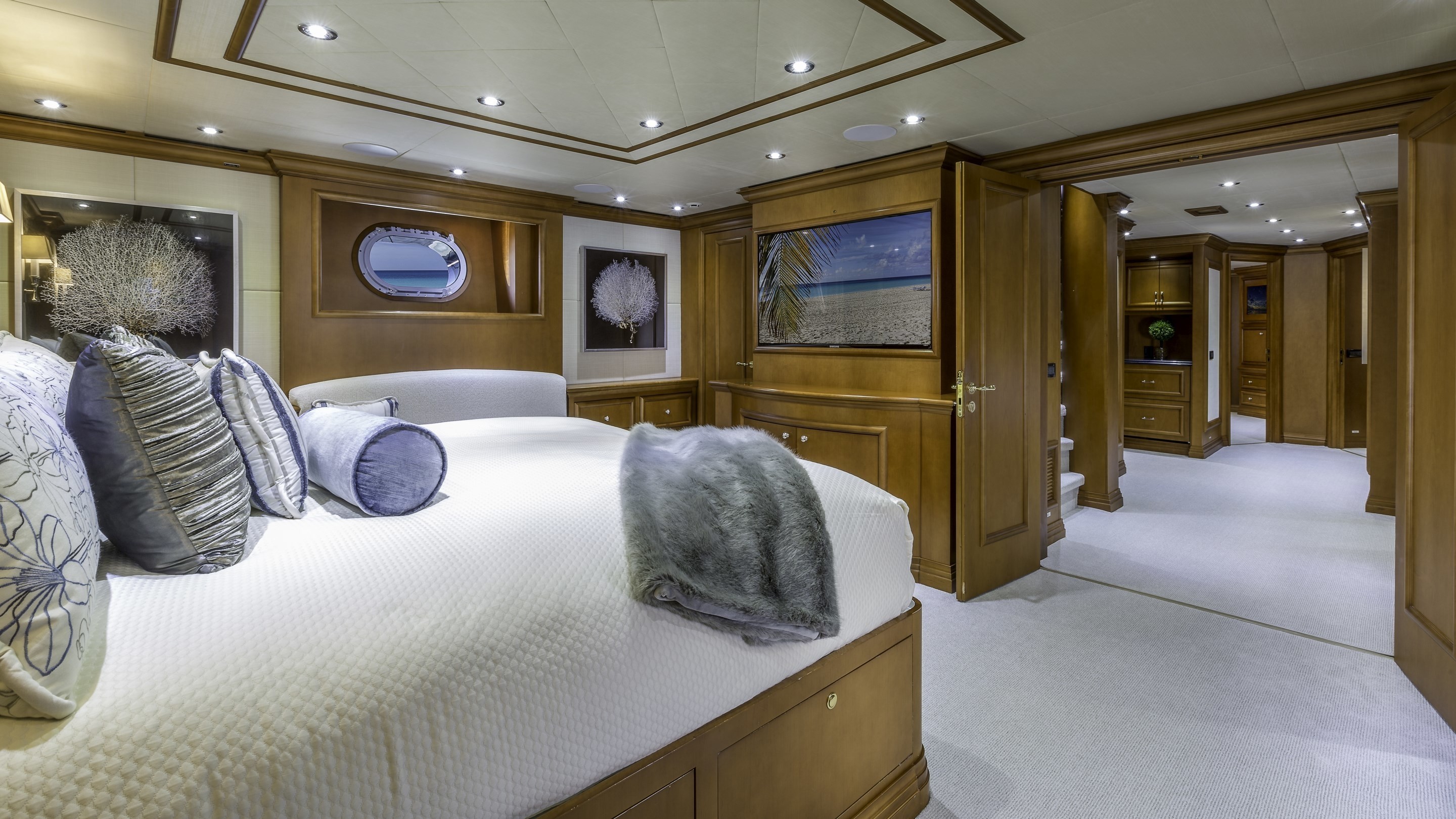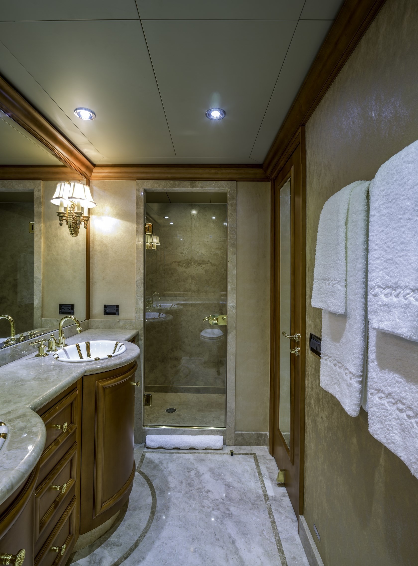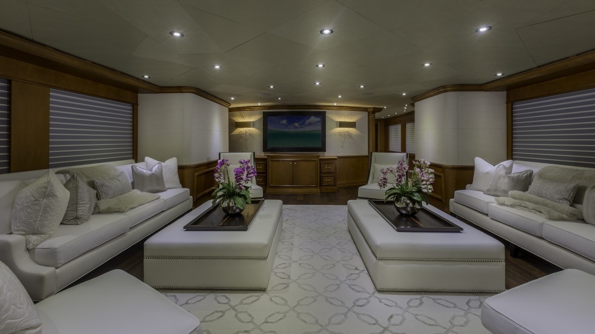 She sustains twin robust CATERPILLAR diesel engine(s) and can find a comparatively good top end continuous speed of 20 knots. The engine of the AQUASITION produces 2250 horse power (or 1656 kilowatts). Her total HP is 4500 HP and her total Kilowatts are 3311. She is driven by twin screw propellers. As for the yacht’s stabalisers she uses Naiad. With respect to bow thruster maneuverability she was fitted with Naiad. This yacht’s spirited cruising speed is 18 knots which offers a range of 2600.