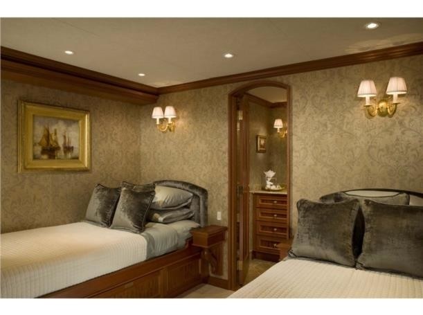 The yacht's general design work came from Burger Design Team. The professional naval architect plans are a work of Burger Design Team. Motor Yacht ARETI II received her stylish interior designing from the interior design office of Burger Design Team. the United States is the country that Burger Boats constructed their new build motor yacht in. After formal launch in 2007 in Manitowoc Wi the boat was delivered on to the happy owner having completed sea trials and testing. A fairly large proportion is brought about with a widest beam (width) of 8.1 metres or 26.5 ft. With a 1.8m (5.91ft) draught (maximum depth) she is reasonably shallow. The material aluminium was used in the building of the hull of the motor yacht. Her superstructure over the hull is built with the use of aluminium.