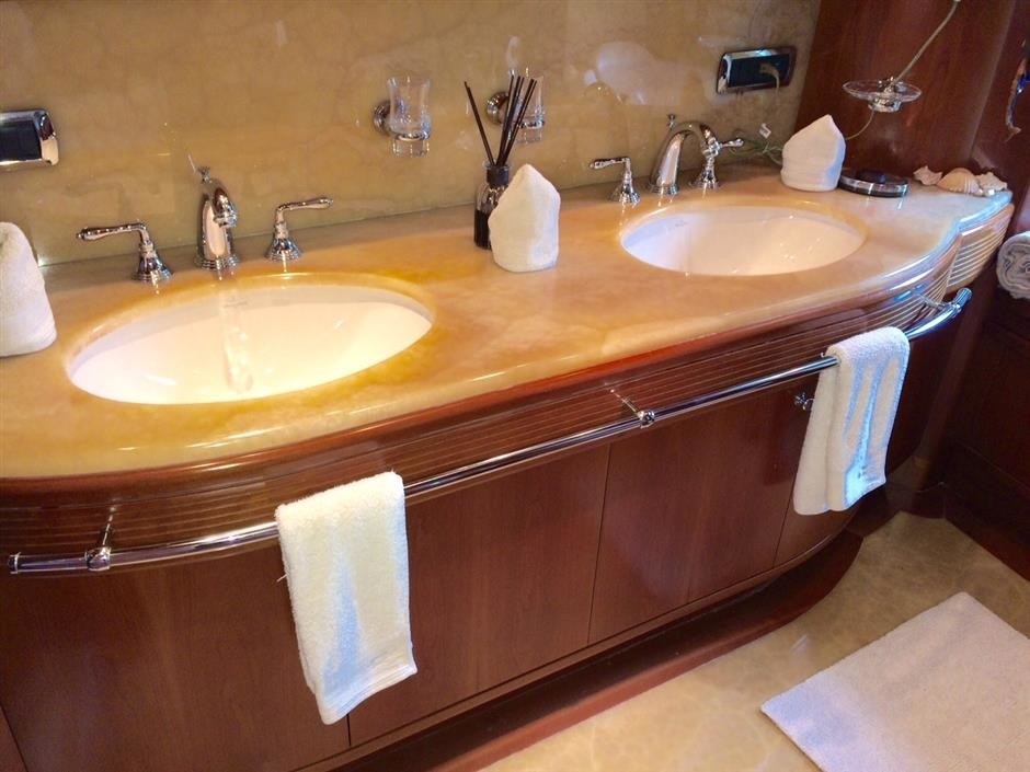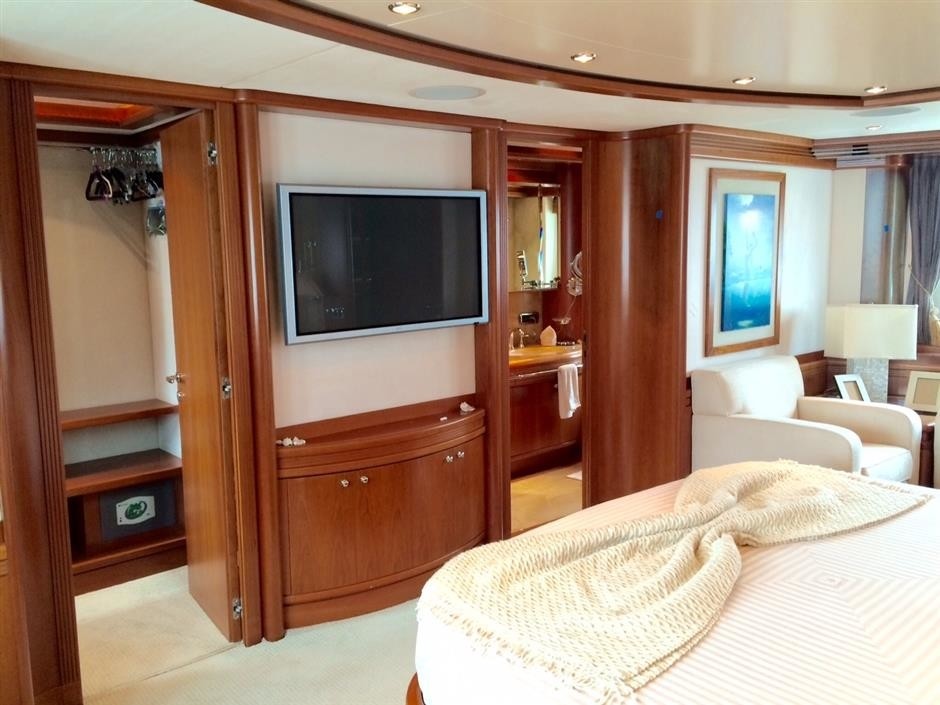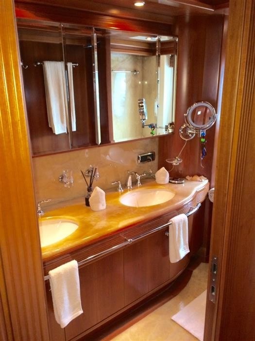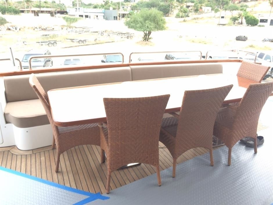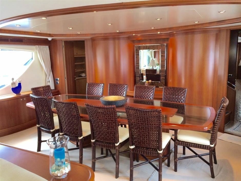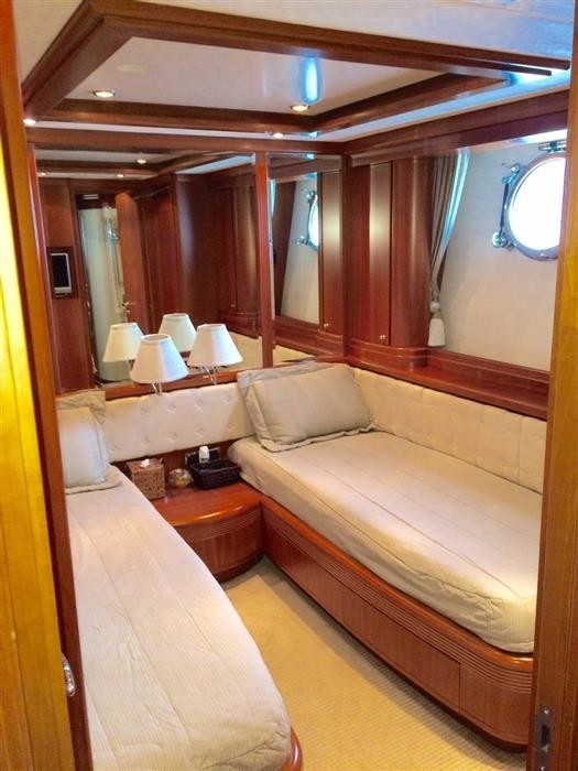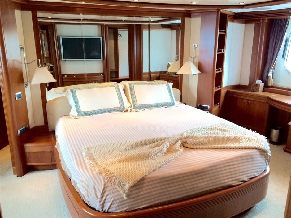 Stefano Righini was the naval architect involved in the technical vessel plans for ARRECHO. Also the company Stefano Righini expertly collaborated on this undertaking. Interior designer Carlo Galeazzi was charged with the overall internal styling. In 2006 she was formally launched with accolade in Viareggio and post sea trials and detailing was thereafter handed over to the owner. Azimut Yachts completed their new build motor yacht in Italy. Her hull was crafted from composite. The motor yacht main superstructure is made extensively from composite. With a width of 7.4 m / 24.3 feet ARRECHO has moderate interior. A shallow draught of 2.1m (6.7ft) determines the list of certain marinas she can berth in, depending on their particular depth at low tide. She had refit maintenance and modification completed in 2008.