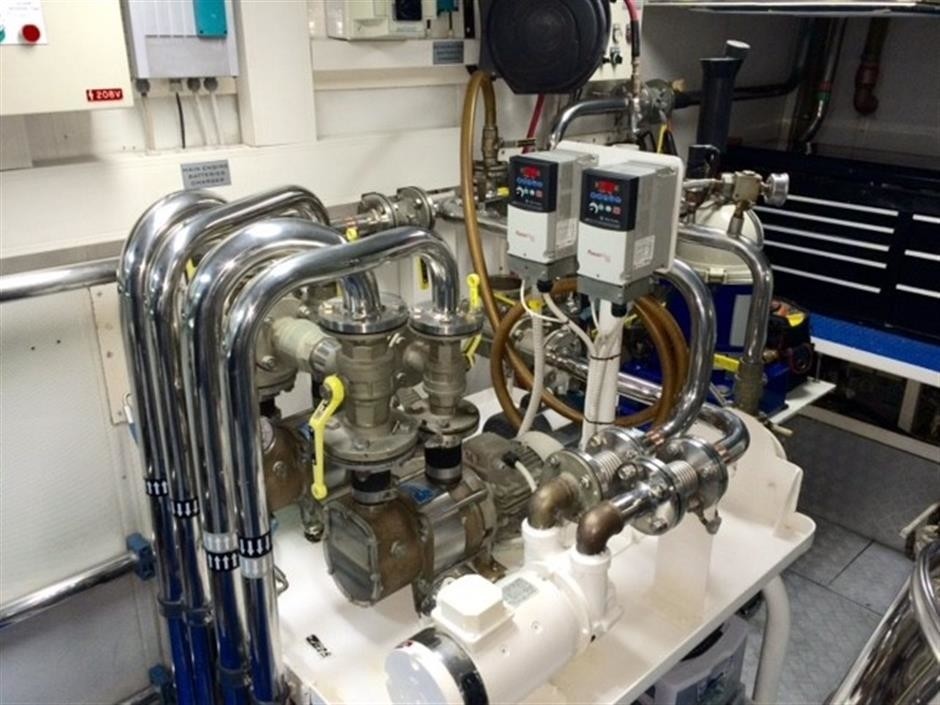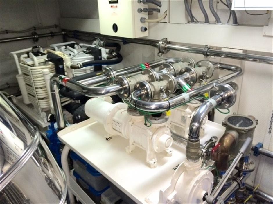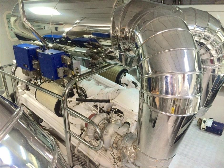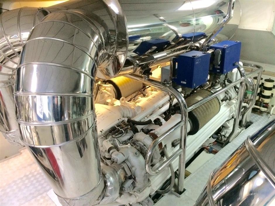 The 16V 2000 M93 engine powering the yacht is produced by MTU. ARRECHO is propelled by twin screw propellers. The engine of the ship generates 2434 horse power (or 1790 kilowatts). She is fitted with 2 engines. The sum thrust for the yacht is therefore 4864 HP / 3580 KW.