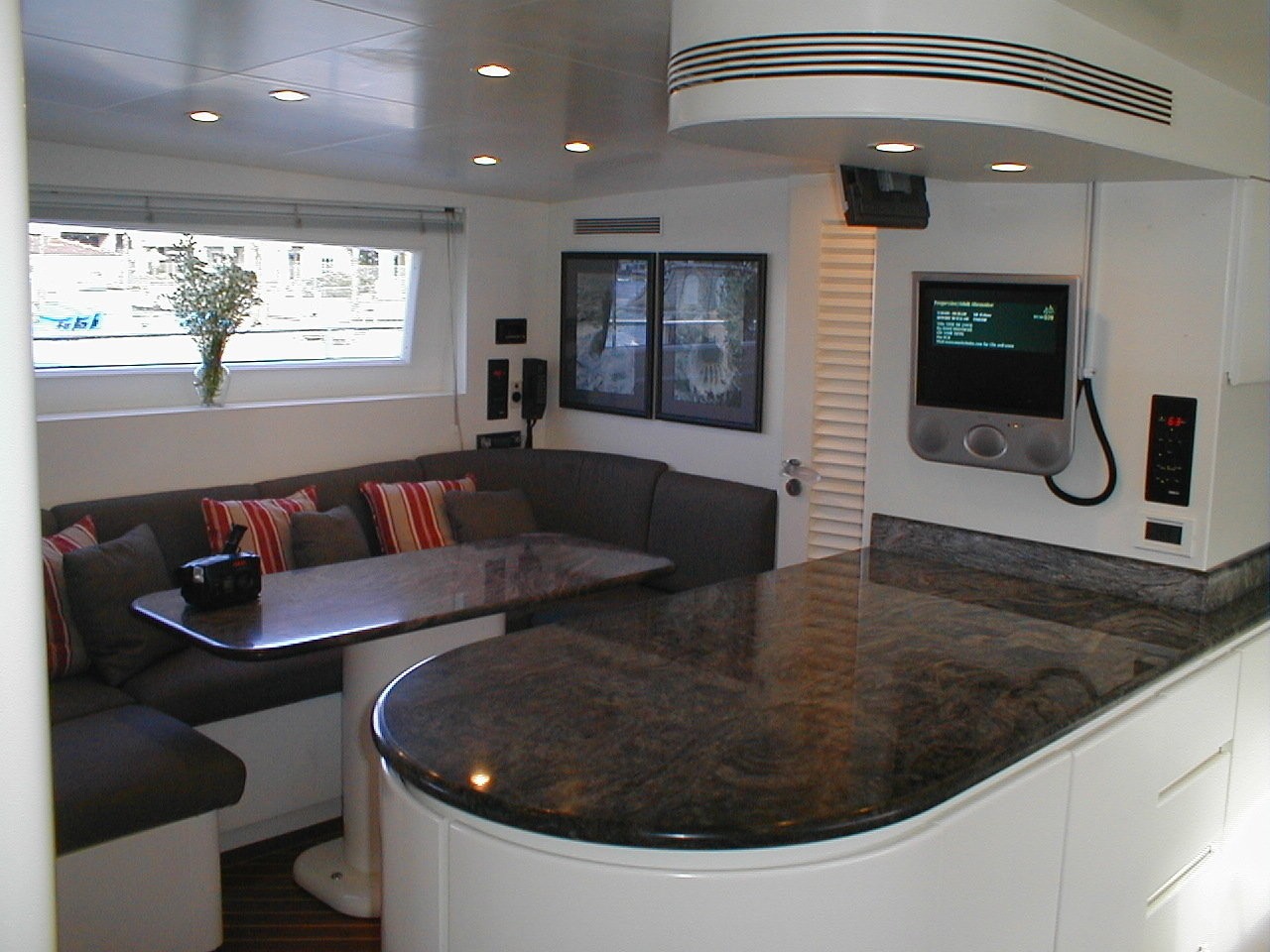 Cruisair is the company that installed the air-con on the yacht. She has a teak deck.