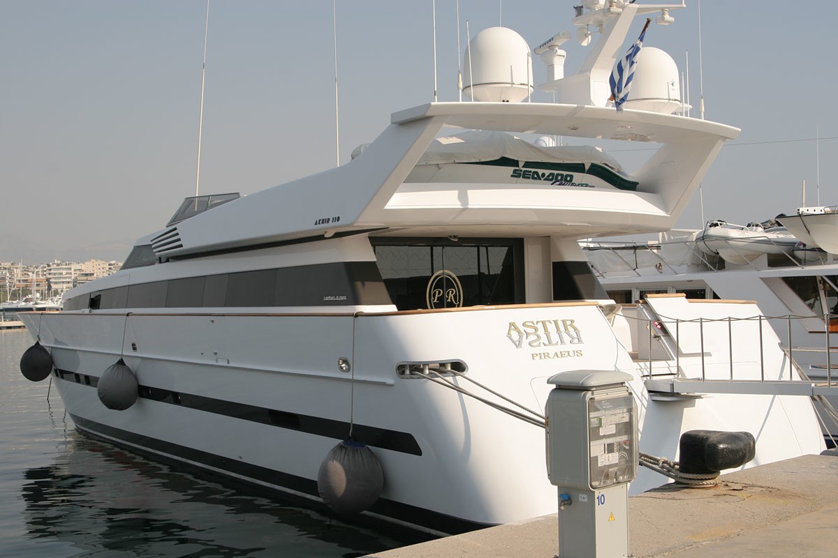 Cantieri Di Pisa was the naval architect firm involved in the technical superyacht plans for ASTIR. Cantieri Di Pisa and Pier-Luigi Spadolini is also associated with the yacht general design work for this boat. Italy is the country that Cantieri Di Pisa constructed their new build motor yacht in. After official launch in 1998 in Pisa she was handed over to the proud new owner having completed sea trials. The core hull was crafted from composite. The motor yacht superstructure component is fabricated mostly from composite. With a beam of 7.45 m / 24.44 ft ASTIR has moderate interior. She has a fairly shallow draught of 1.8m (5.9ft).
