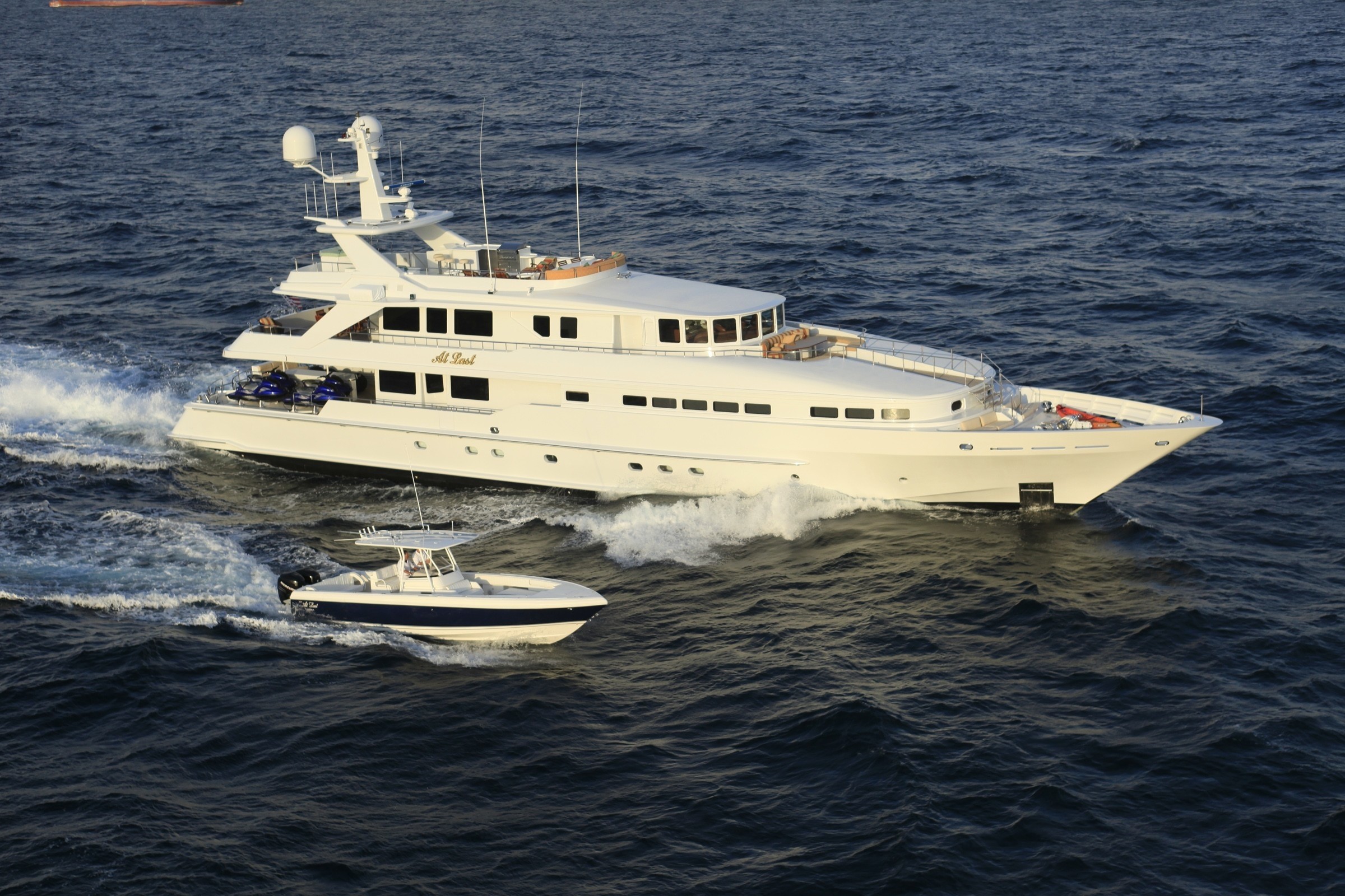 Gerhard Gilgenast was the naval architecture company involved in the professional superyacht composition for AT LAST. Also the company Gerhard Gilgenast expertly collaborated on this project. Interior designer Paola D Smith (Original)/Susanne Skaf was selected for the creative internal styling. the Netherlands is the country that Heesen Yachts built their new build motor yacht in. After the official launch in 1990 in Oss she was afterwards released to the owner having completed sea trials. Her hull was crafted from aluminium. The motor yacht main superstructure is made for the most part from aluminium. With a beam of 9.21 m or 30.2 ft AT LAST has spacious room. She has a reasonably shallow draught of 1.65m (5.4ft). She had refit maintenance and alteration work completed in 2005.