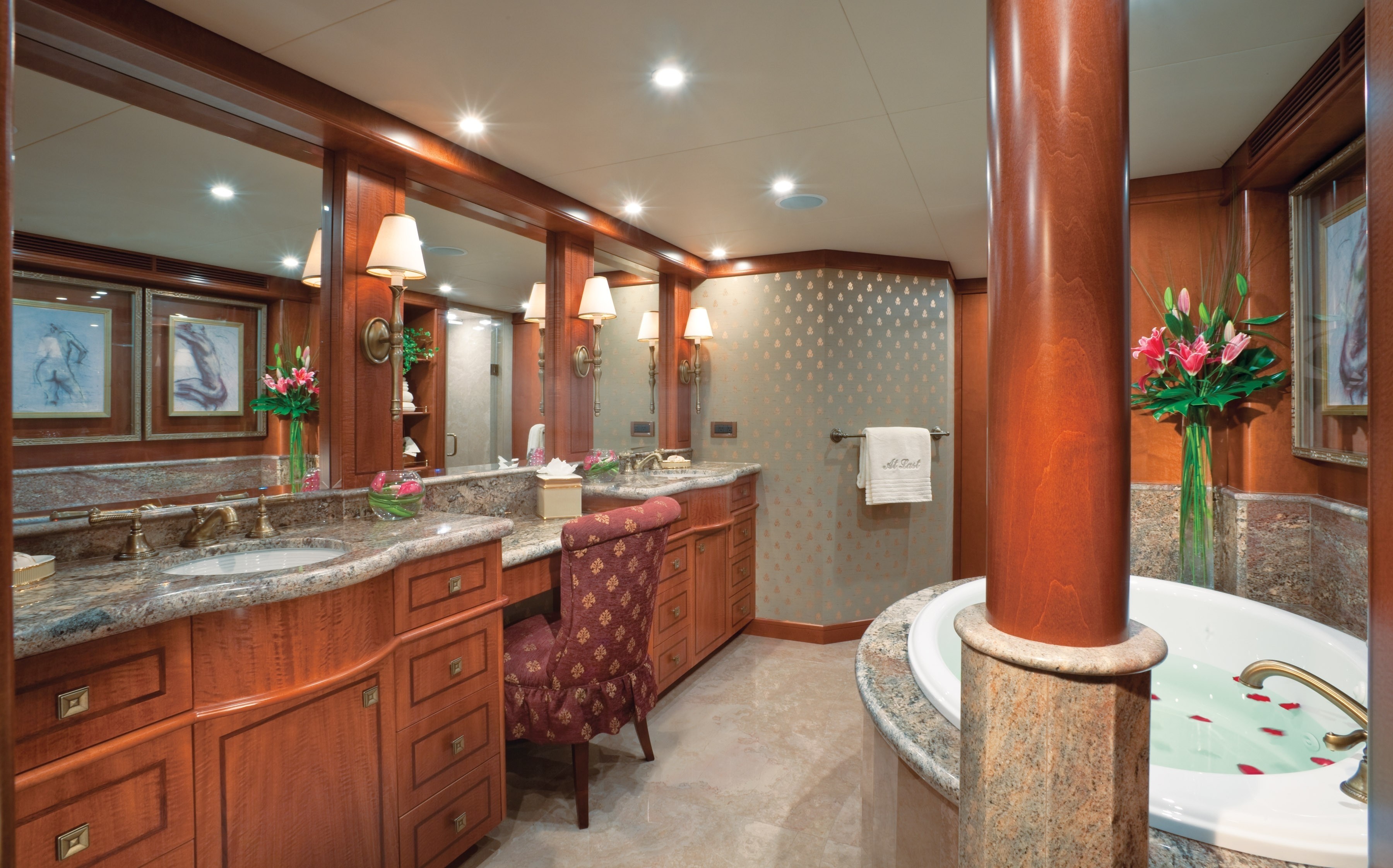Apportioning volume for a limit of 8 visiting passengers overnighting, the AT LAST accommodates everyone in luxury. Normally the vessel uses approx 8 expert yacht crew to run.