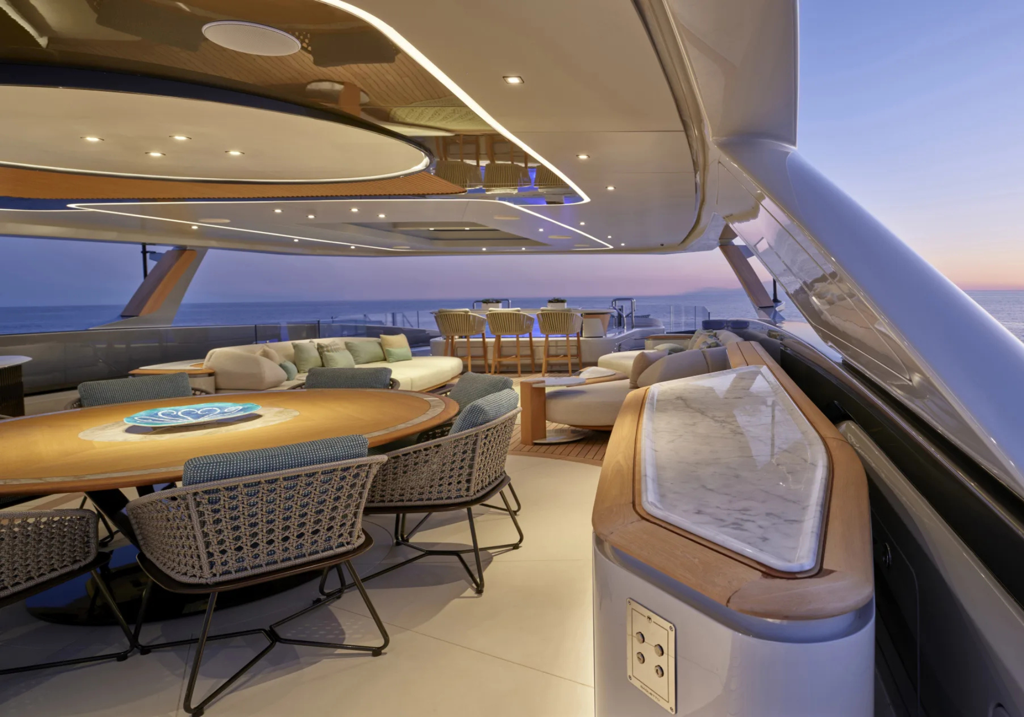 Guest Accommodation: CABINS: ~Principle - super king. With ensuite bathroom (Bed 200x200) ~VIP - king. With ensuite bathroom (shower) (Bed 180x200) ~VIP - king. with ensuite bathroom (shower) (Bed 180x200) ~Convertible (twin or double) with shower (86x200 (single) / 172x200 (double) / 76x189 (pullman)) ~Convertible (twin or double) with shower (86x200 (single) / 172x200 (double) / 76x189 (pullman)) ~TV / kids cabin with 2 pullmans - not suitable for use as a permanent cabin for guests as there is no storage and no floor space when pullman are out. ~Caters as a TV room / Kid's sitting room / nap space for children OTHER: ~Aft main deck - retractable pool ~Fire pit ~Teppanyaki Grill
