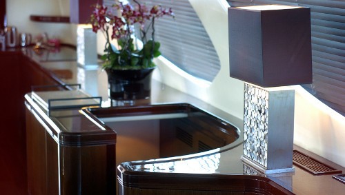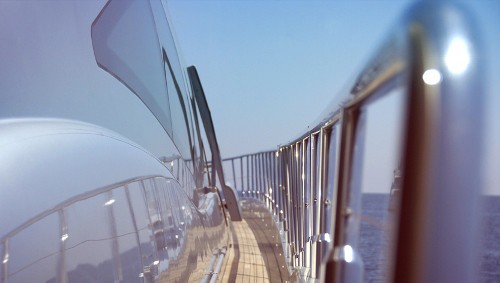 M/Y AWESOME has powerful lines showing “an aggressive personality” which is enhanced by her distinctive silver hull. The yacht won the 2005 design and innovation prize at “European Yachts Trophies” She can reach speeds of up to 36 knots.