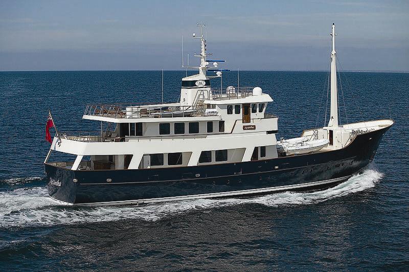 Vripack Naval Architects was the naval architect firm involved in the technical superyacht plans for AXANTHA. Her interior design was completed by Vripack Naval Architects / Dick Boon. Vripack Naval Architects and Dick Boon is also associated with the yacht general design work for this yacht. France is the country that Jfa Chantier Naval constructed their new build motor yacht in. After formal launch in 2003 in Concarneau she was released to the happy owner following sea trials and testing. The main hull was crafted from aluminium. The motor yacht main superstructure is made extensively with aluminium. With a width of 8.23 metres or 27 ft AXANTHA has spacious internal space. She has a reasonably shallow draught of 2.44m (8ft).