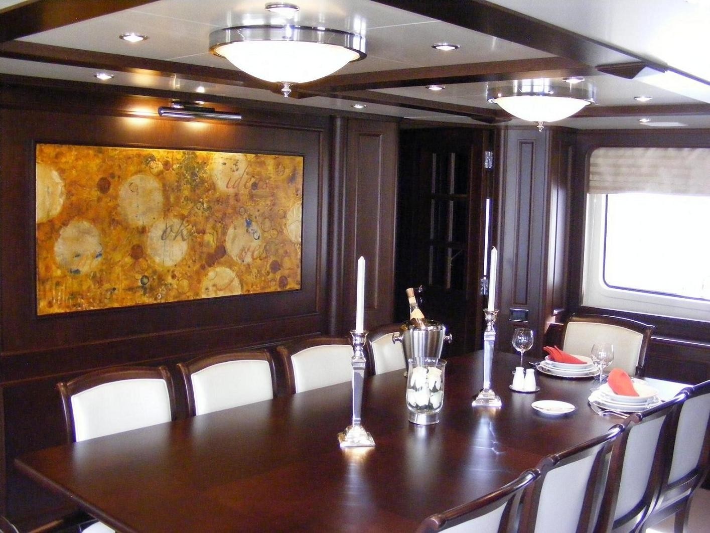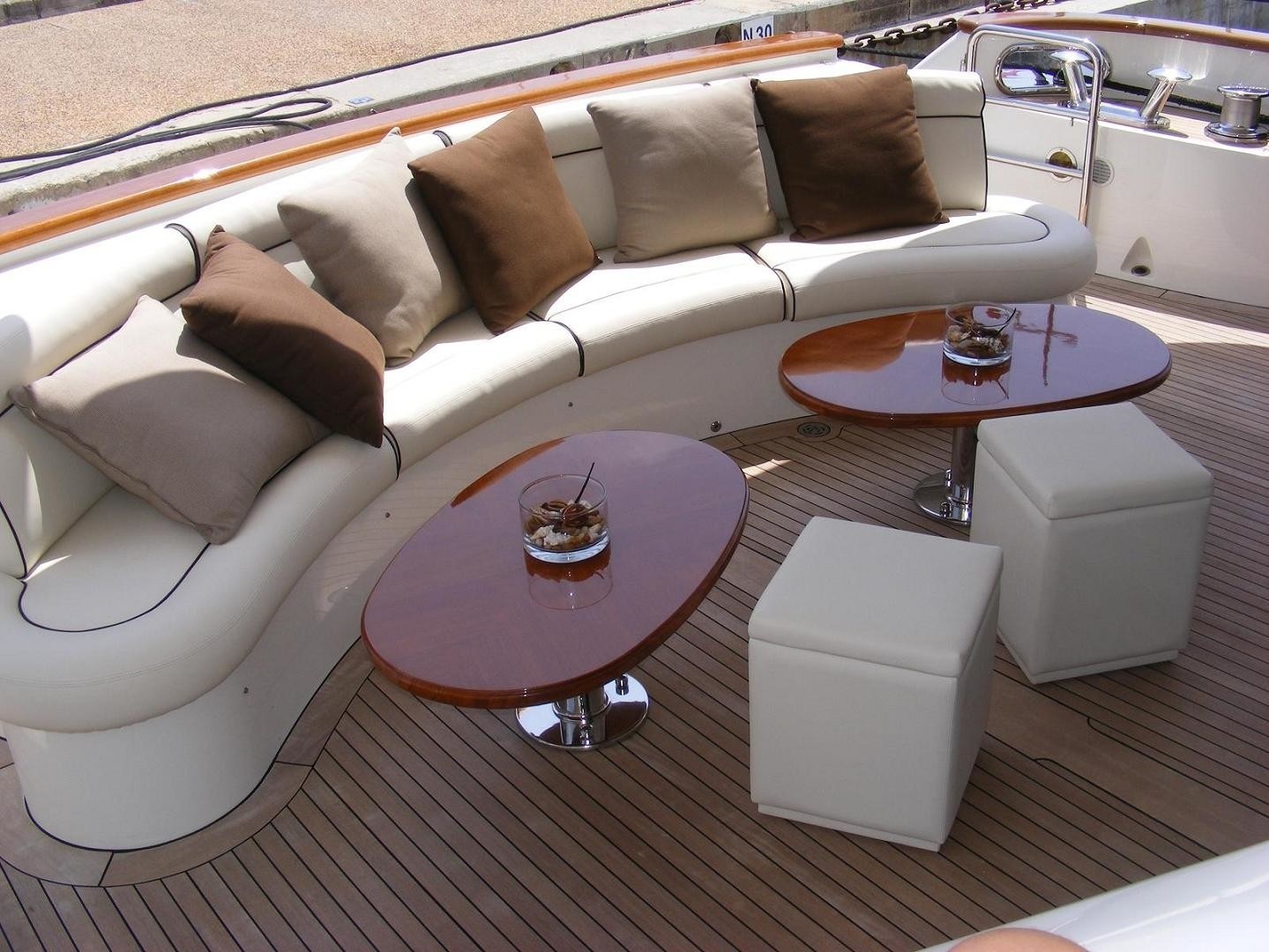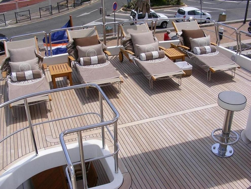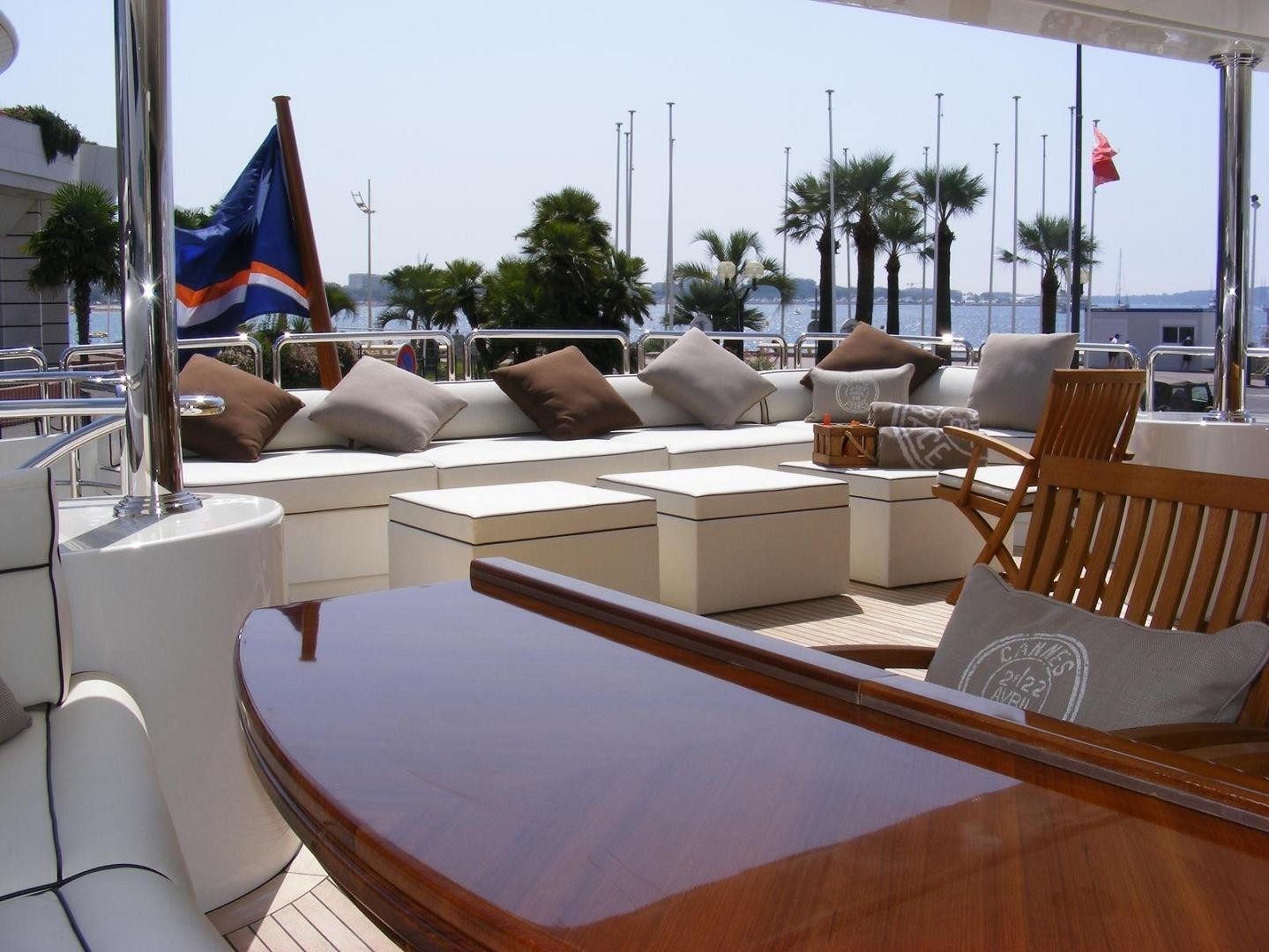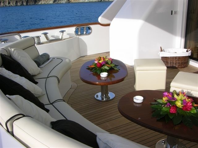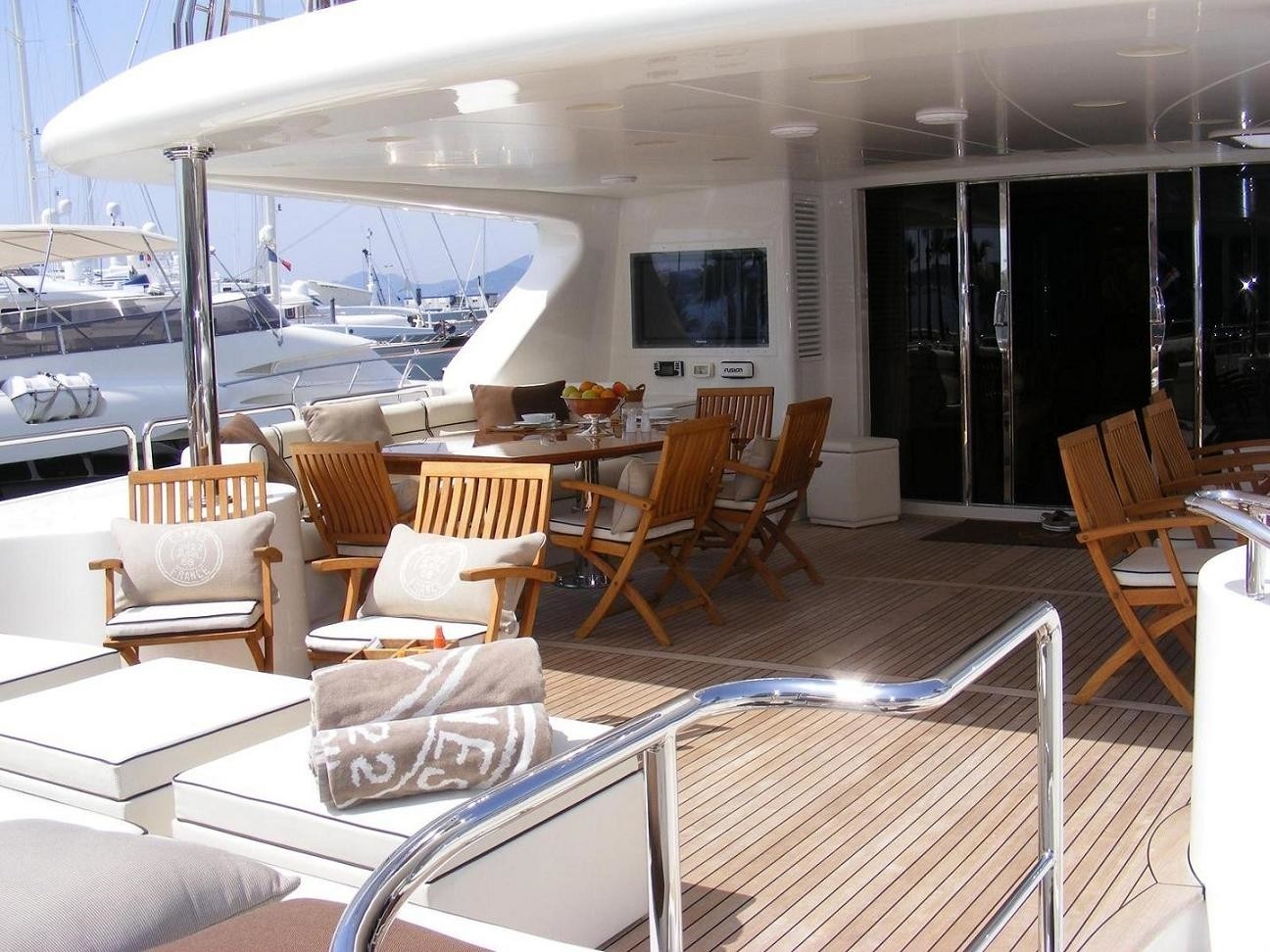 Fratelli Benetti was the naval architecture company involved in the technical vessel plans for BACCHANAL. Also the company Fratelli Benetti and Stefano Righini successfully worked on this project. Interior designer Zuretti Interior Design was employed for the creative interior styling. Italy is the country that Benetti Yachts constructed their new build motor yacht in. After formal launch in 2005 in Fano the boat was handed over to the proud new owner following sea trials. A moderate area is brought about with a widest beam (width) of 7.62 m / 25 feet. With a 1.95m (6.4ft) draught (maximum depth) she is shallow. The material composite was used in the building of the hull of the motor yacht. Her superstructure above deck is fashioned out of composite.