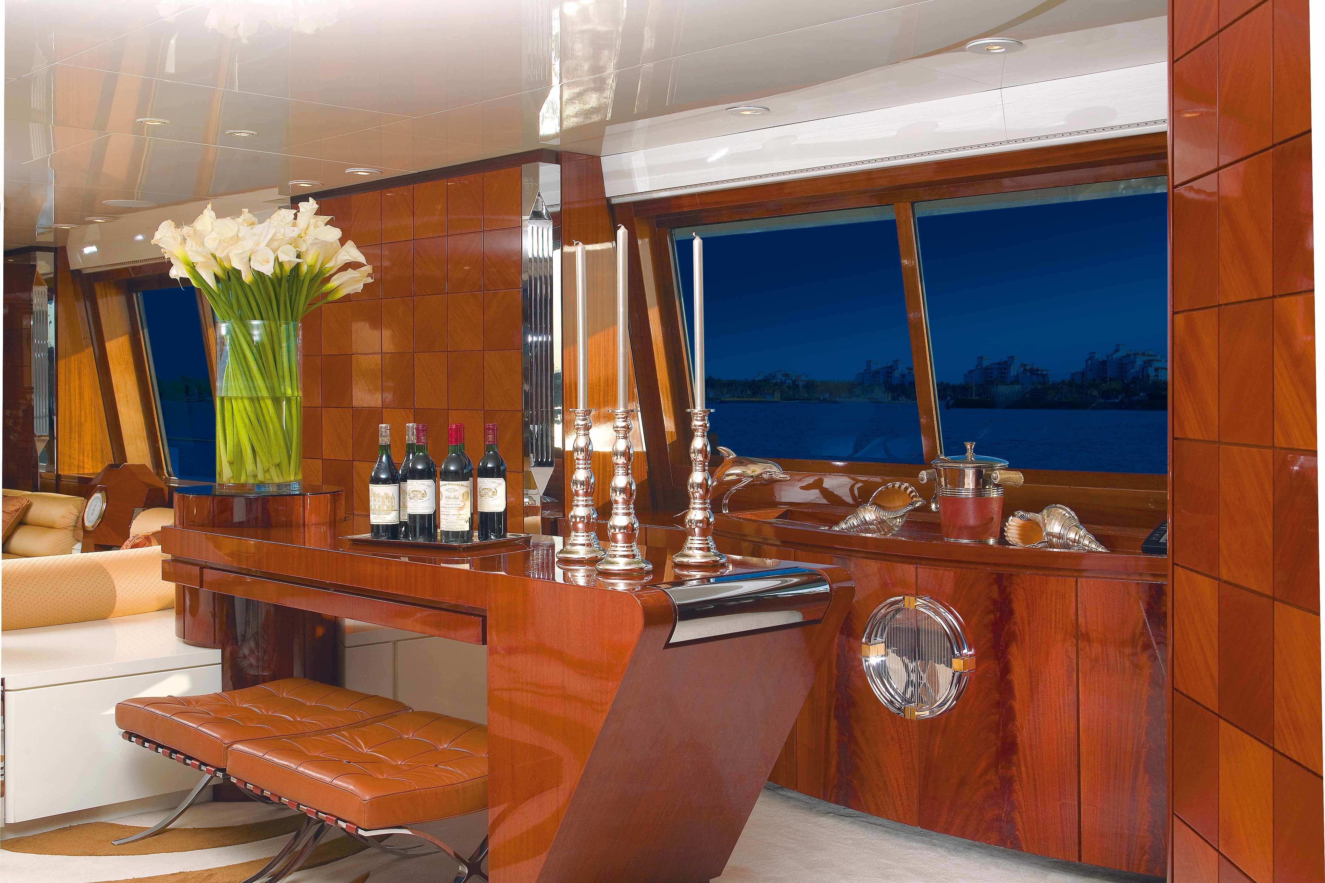 Don Shead was the naval architect firm involved in the professional nautical plans for BAD GIRL. Also the company Don Shead skillfully collaborated on this undertaking. Interior designer Luigi Sturchio was employed for the internal interior ambience. In 1992 she was actually launched to accolade in Lowestoft and post sea trials and detailing was thereafter delivered to the owner. Brooke Marine /Brooke Yachts International completed their new build motor yacht in the United Kingdom. A fairly large feeling is manifested with a widest beam (width) of 9.7 metres or 31.8 ft. With a 2.2m (7.22ft) draught (maximum depth) she is shallow. The material aluminium was used in the building of the hull of the motor yacht. Her superstructure above deck is fashioned from aluminium. In 2006 further refitting and modernisation was also performed.