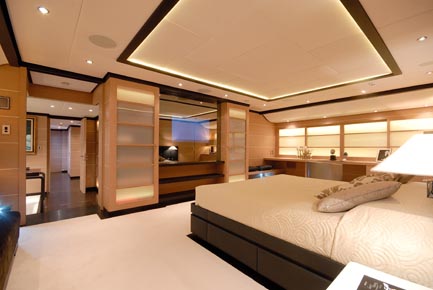 Baglietto luxury motor yacht accomodates up to 10 yacht charter guests in 5 cabins with 1 King bed, 2 Queen, 4 Single and 2 Pullman bunks.