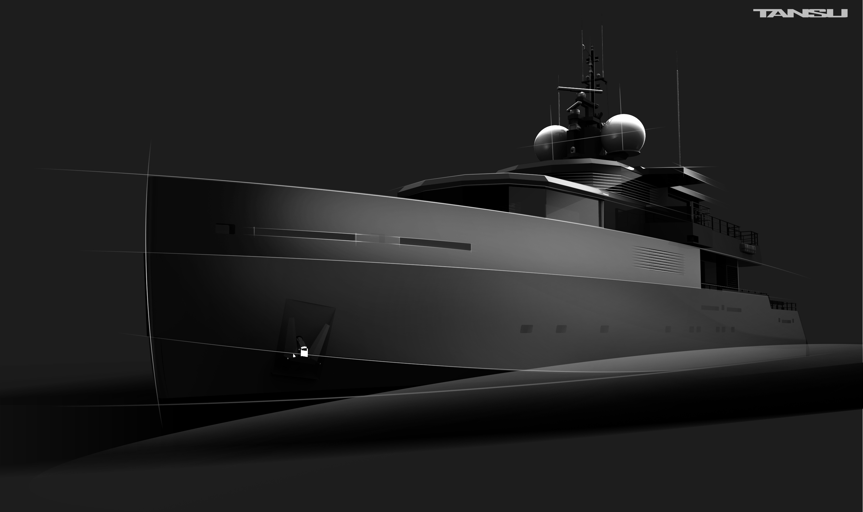 The yacht boasts the aggressive and military exterior profile, which is a special feature that Tansu Yachts are known for.