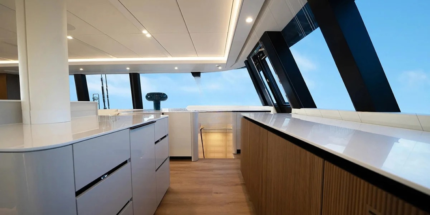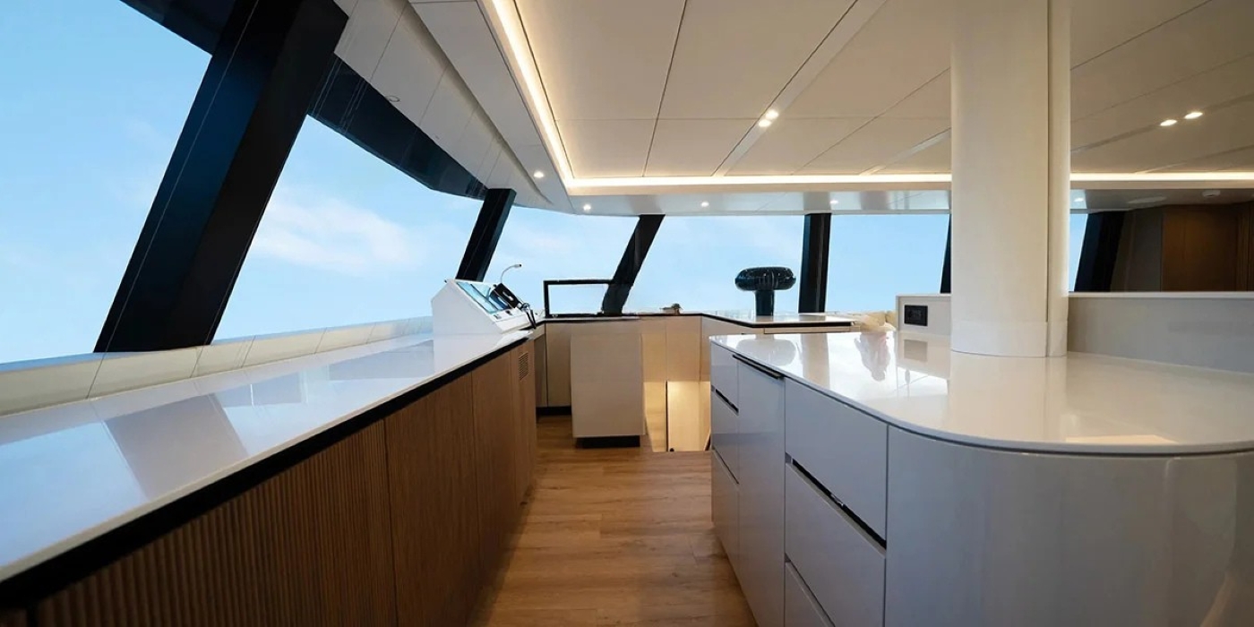 Soft lighting, elegant design accents and quality finishes ensure the interior feels both refined and welcoming. The salon connects effortlessly with the cockpit and helm, maintaining fluid movement throughout the main deck.