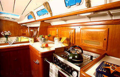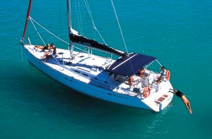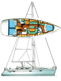 The Caribbean bareboat sailing yacht, Beneteau 473 has main slab reefing and furling genoa, wheel steering, electric anchor winch, autopilot, GPS and depth sounder. There is a swimming platform and ladder, a bimini and dodger shading the companionway, a dinghy with outboard, an ondeck shower and BBQ,AM/FM radio & CD player, fully equipped galley with LPG stove & oven, fridge/freezer, pre-charter cruising guides, full boat and chart briefing. Optional extras include a skipper, cook and a provisioning service.