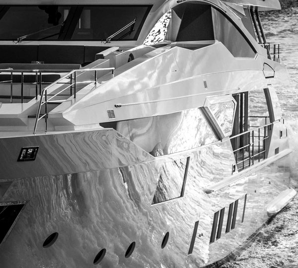 NOTABLE FEATURES: sporty, striking looks ~ speed and comfort in one yacht ~ Azipull Carbon Thrusters from Rolls-Royce ~ low fuel consumption ~ quiet ~ spacious foredeck with Jacuzzi ~ great sundeck ~ alfresco dining on bridge deck ~ spacious and light-filled accommodation with clean design ~ master suite with private veranda ~ gymnasium ~ huge swimming platform ~ great selection of water toys