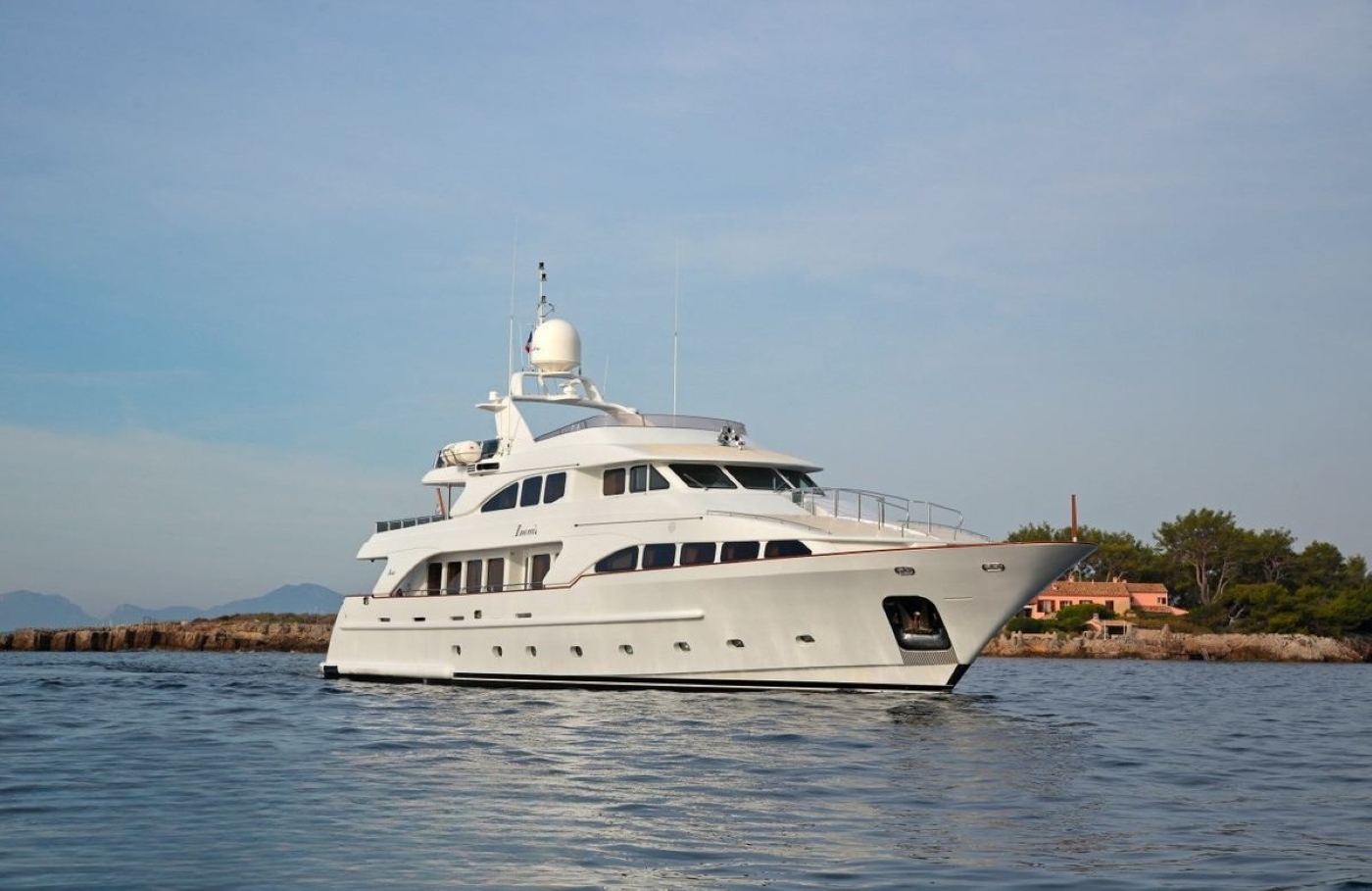 Luxury motor yacht INOUIS (ex Diane) is fine example of the 34.95 m Benetti Classic design. M/Y INOUIS easily accommodates up to 10 charter guests in excellent comfort, stability and luxurious performance. She boasts 5 cabins, with 3 doubles and two twins. All of the cabins are fully air conditioned and have full ensuite bathrooms and electronic audio visual equipment.