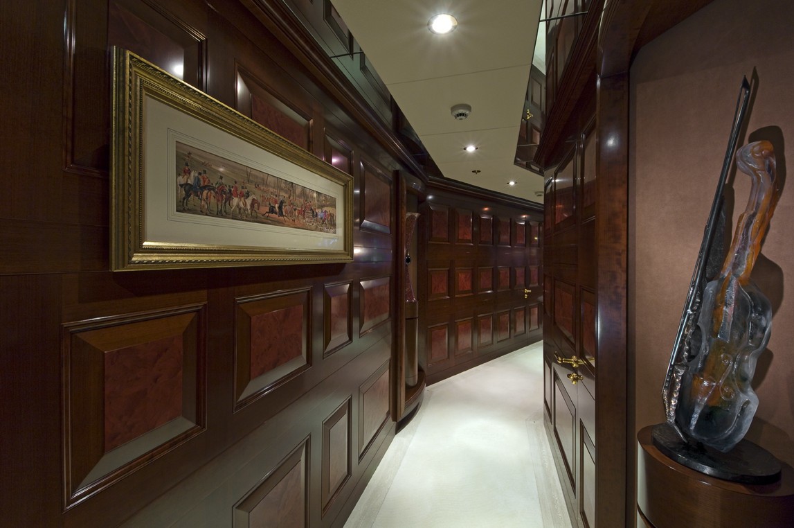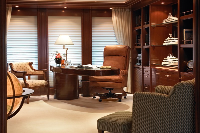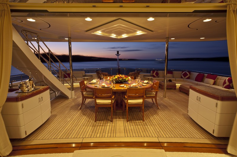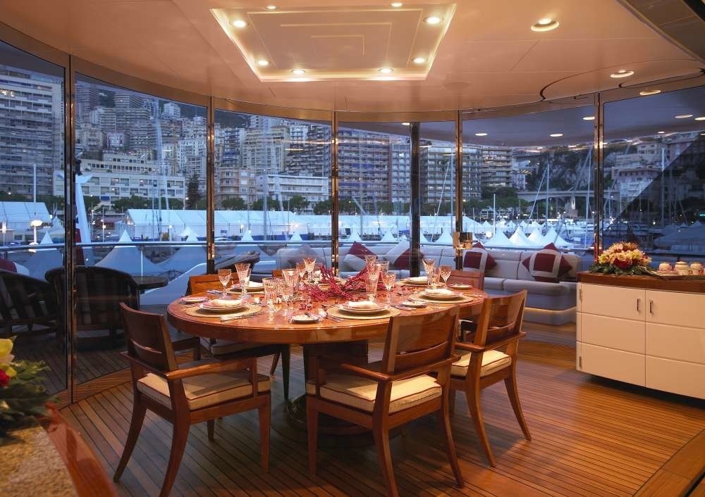 De Voogt Naval Architects was the naval architect firm involved in the technical nautical design work for BLUE MOON. Also the company De Voogt Naval Architects and Donald Starkey Designs expertly worked on this project. Interior designer Donald Starkey Designs was commissioned for the internal interior styling. the Netherlands is the country that The Feadship Royal Van Lent Shipyard constructed their new build motor yacht in. After the official launch in 2005 in Kaag she was afterwards passed over to the happy owner having completed sea trials and testing. A spacious area is brought about with a maximum beam (width) of 11.29 metres or 37 feet. With a 3.35m (11ft) draught (maximum depth) she is reasonably deep. The material steel was used in the building of the hull of the motor yacht. Her superstructure over the hull is fashioned out of aluminium. In 2008 extra refitting and updating was in addition performed.