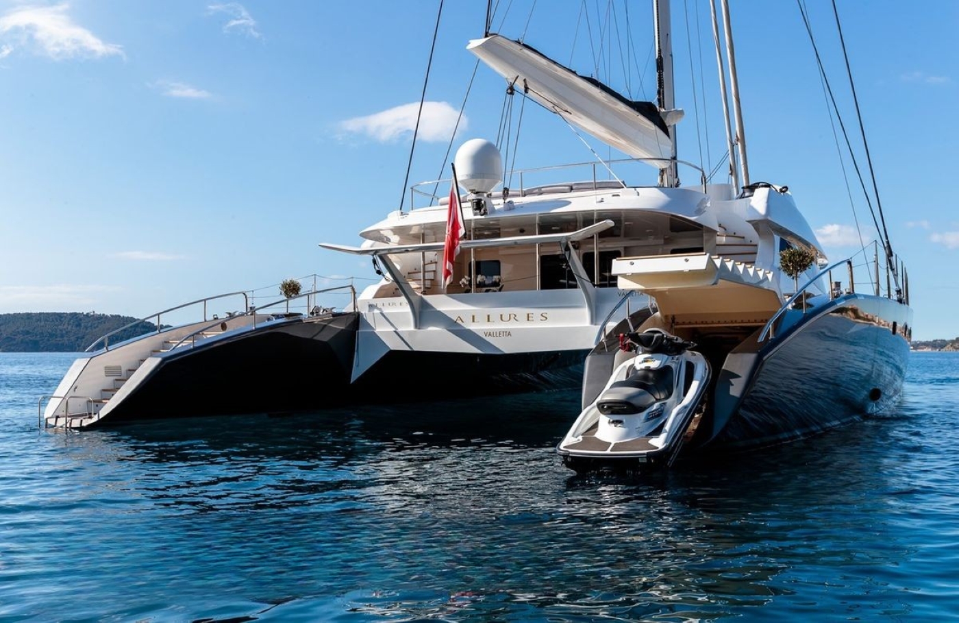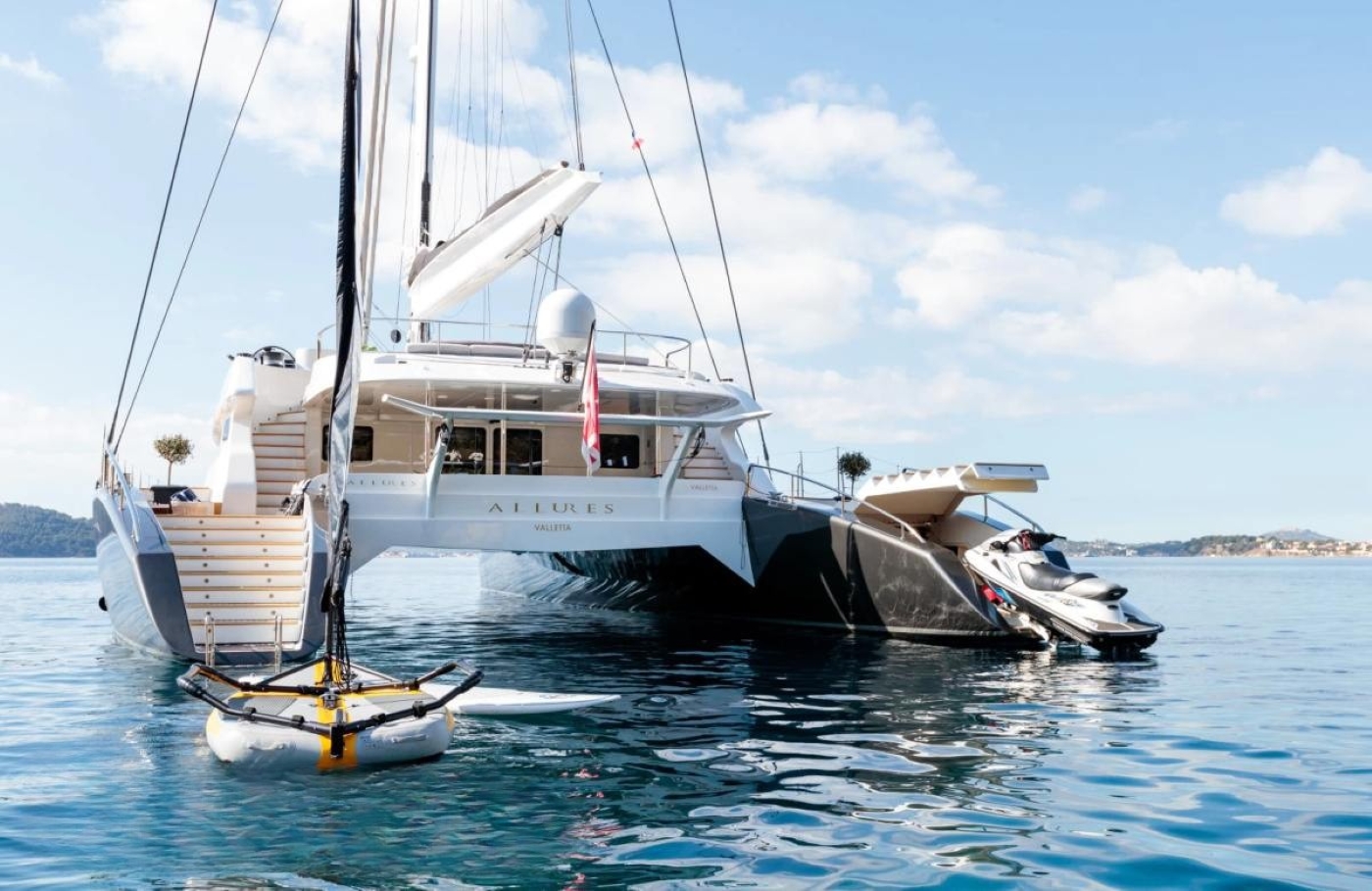 ALLURES features an exceptionally styled, Italian superyacht interior with modern lines well integrated with her interior volume. She is a superb yacht, elegant and refined, made for fast cruising or corporate entertainment functions. This catamaran is sporty yet straightforward to sail and represents the ideal means of living in harmony with the sea, while fully enjoying the luxury and comfort of an outstanding vessel.