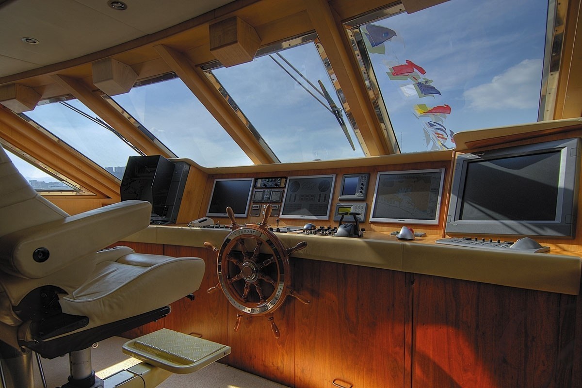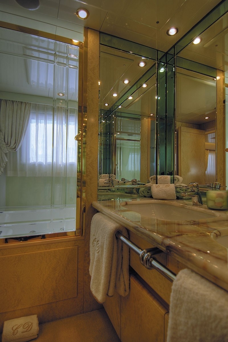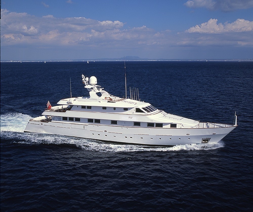 Claudio Zampetti was the naval architect firm involved in the formal nautical composition for CD TWO. Her interior design was completed by Claudio Zampetti/Nicolini/Celi. Claudio Zampetti is also associated with the yacht general design work for this yacht. Created by Cantieri Navali Nicolini this yacht was fabricated within Italy. She was officially launched in Ancona in 1993 before being delivered to the owner. A reasonable area is achieved with a widest beam (width) of 7.56 m / 24.8 feet. With a 2.8m (9.2ft) draught (maximum depth) she is fairly shallow. The material steel was used in the building of the hull of the motor yacht. Her superstructure above deck is built from aluminium. In 2004 extra refitting and modernisation was additionally performed.