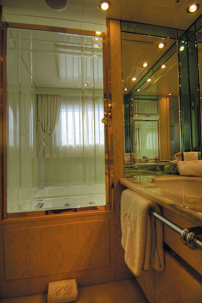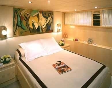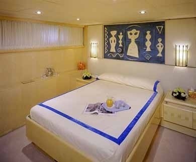 Motor yacht CD TWO has accommodation for 12 guests. The yachts owners’ suite is located on the main deck forward and is full width of the beam. Adjoining this is the first of the three twin cabins. On the lower deck two equal sized double cabins as well as the remaining two twin cabins can be found. On the upper deck there is an additional single cabin.