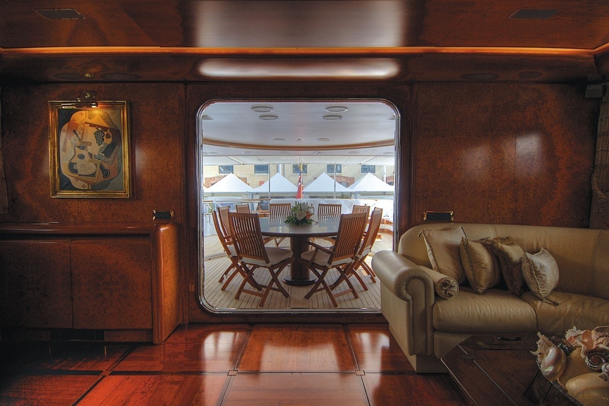 The motor yacht CD TWO is a 43 metre 141 (foot) generous steel ship which was created by Cantieri Navali Nicolini and conceived by Claudio Zampetti. Sleeping 12 passengers and 9 qualified crew, motor yacht CD TWO used to be Independent Of London which was her shipyard project name or actual name. Finished and launched by 1993 her interior decoration demonstrates the established conceptualisation of owner and Claudio Zampetti/Nicolini/Celi.