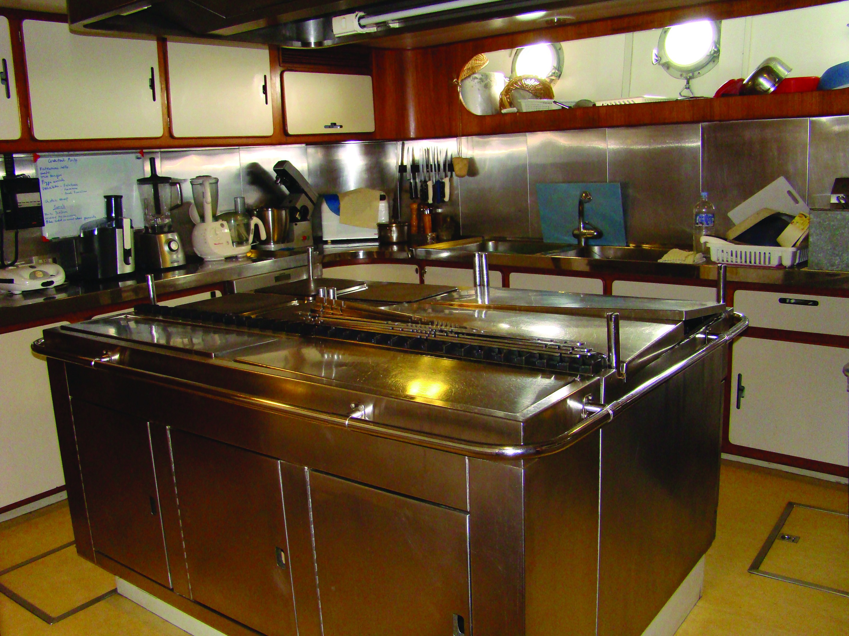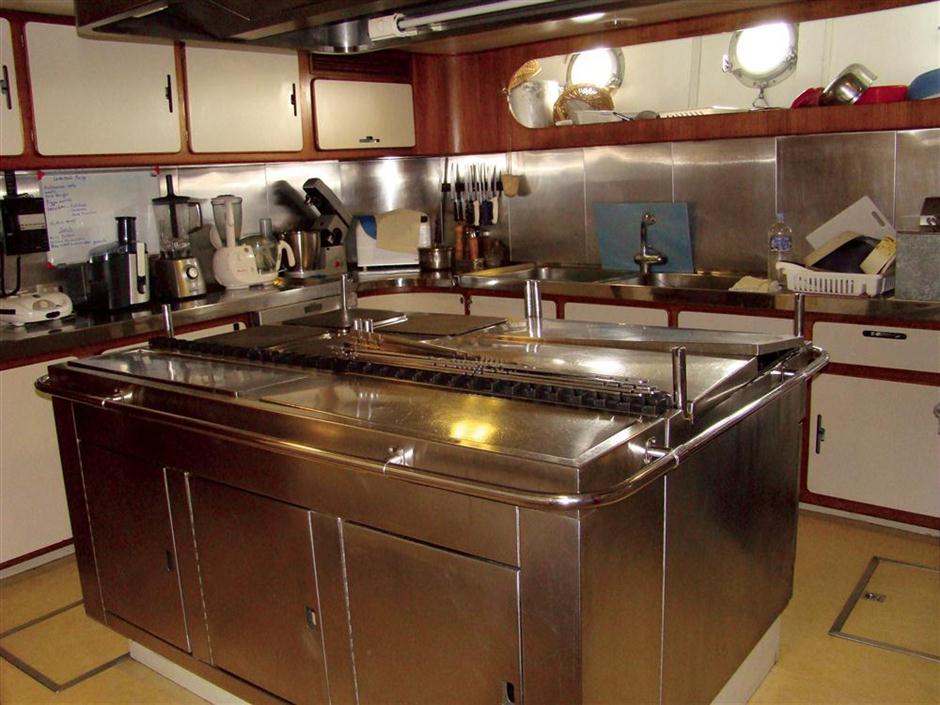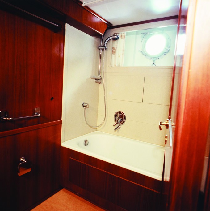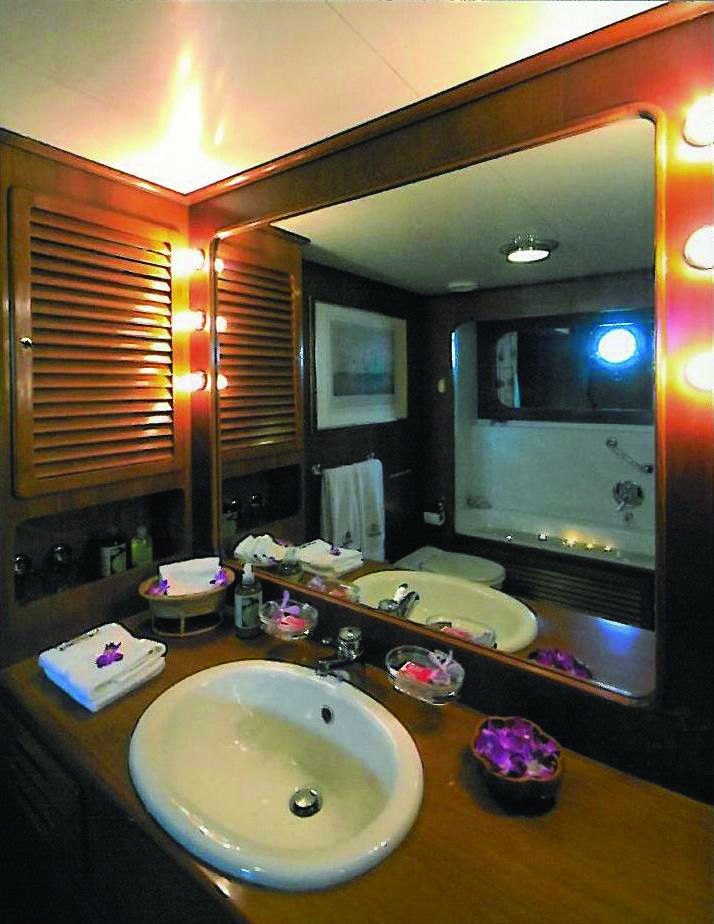 The spacious main saloon combines luxury and style. It is equipped with the latest state of the art entertainment and sound system. The décor is elegant and comfortable. Also on the main deck, is a convenient day head, a service pantry and the master cabin is located forward.