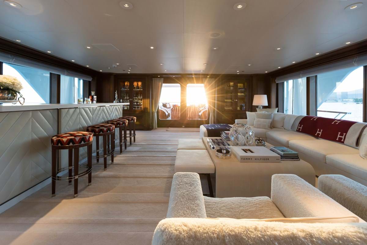Her new stunning and elegant interior combines a contemporary look with a touch of a classic nautical theme. FLAG offers an impressive volume both indoors and out.
