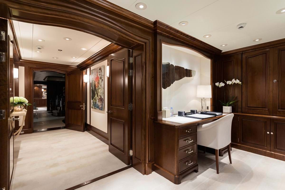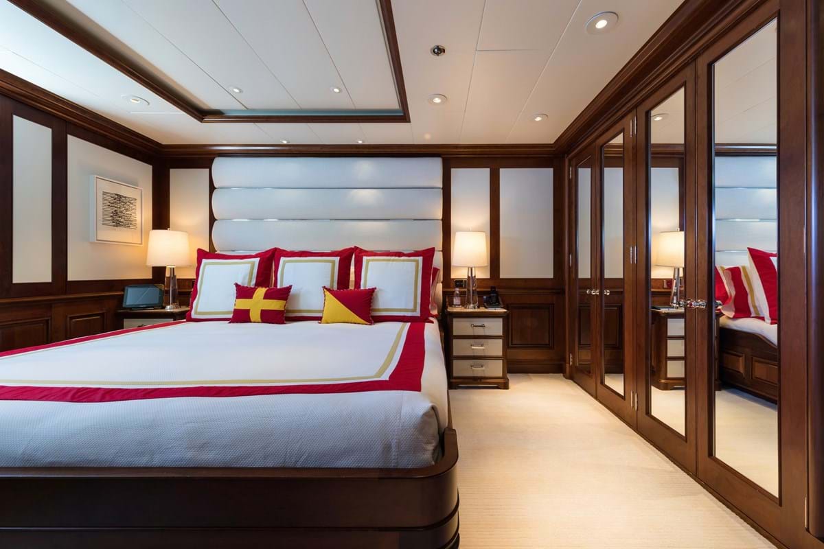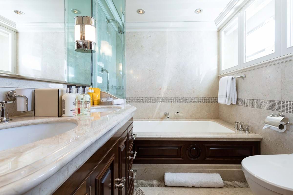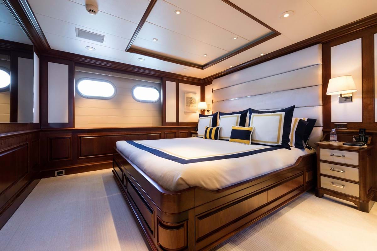- The Master cabin is situated on the main deck with a king-size bed, private study, his bathroom with a large steam shower and hers with a stone bathtub.