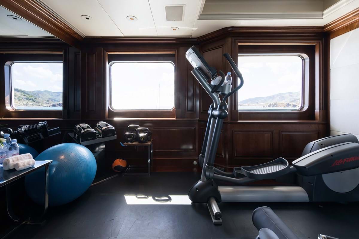 For the guests who are keen on sports, there is a gymnasium on the upper deck and a generous array of water toys available (26’ custom tender, 27’ Novurania tender, 3 wave runners, 1 jetski, water slide, sea bobs, waterskis, wakeboard, paddle board, fishing gear, etc..)