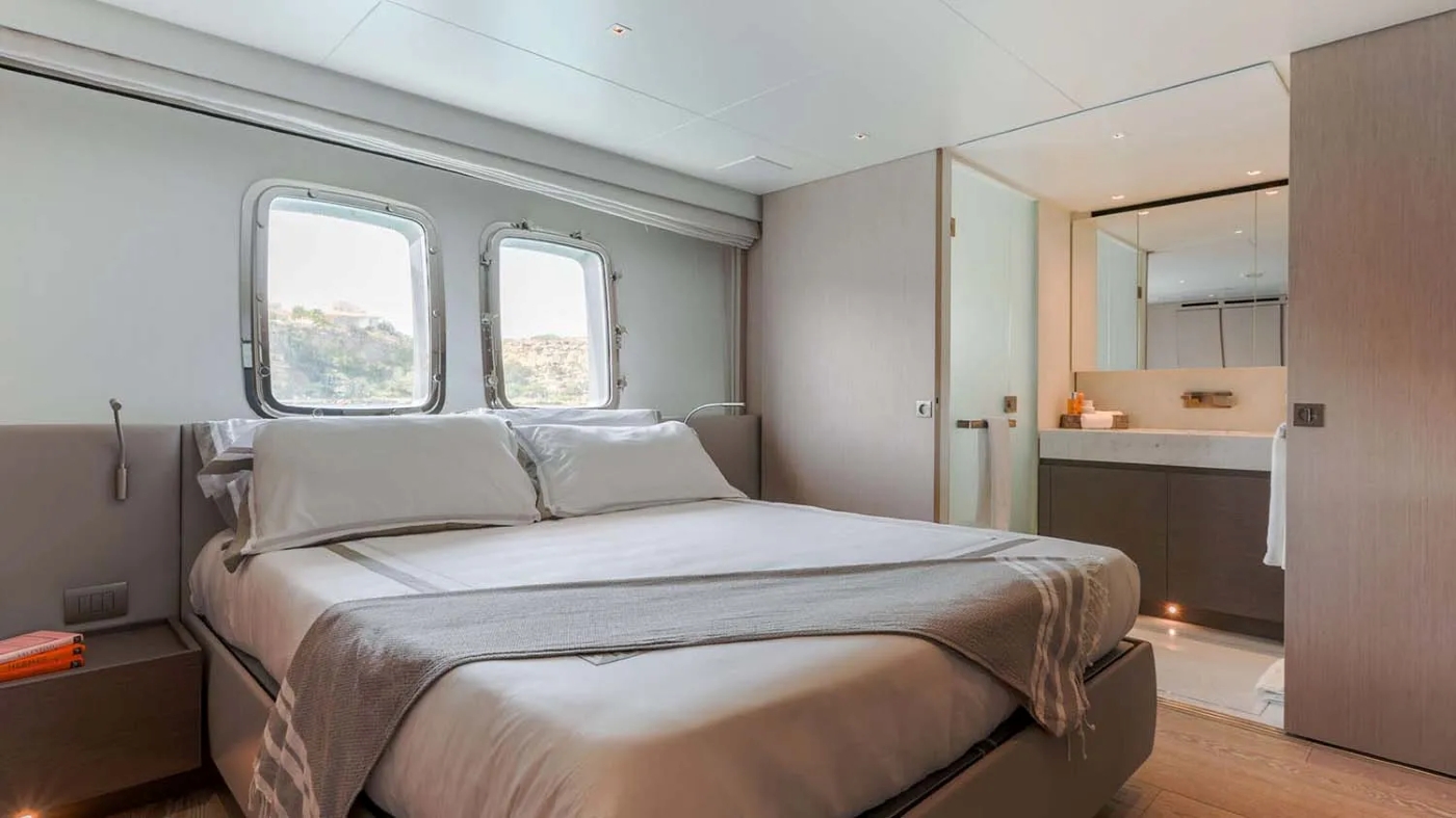 COOL accommodates 10 guests in 5 spacious staterooms: ~ 1 Master suite on the main deck with king-sized bed, panoramic windows, and large ensuite with walk-in shower and double vanity ~ 2 VIP cabins on the lower deck with queen-sized beds and ensuites ~ 2 Double cabins with queen-sized beds and private ensuite bathrooms ~ All cabins include HDTVs, high-quality sound systems and generous natural light
