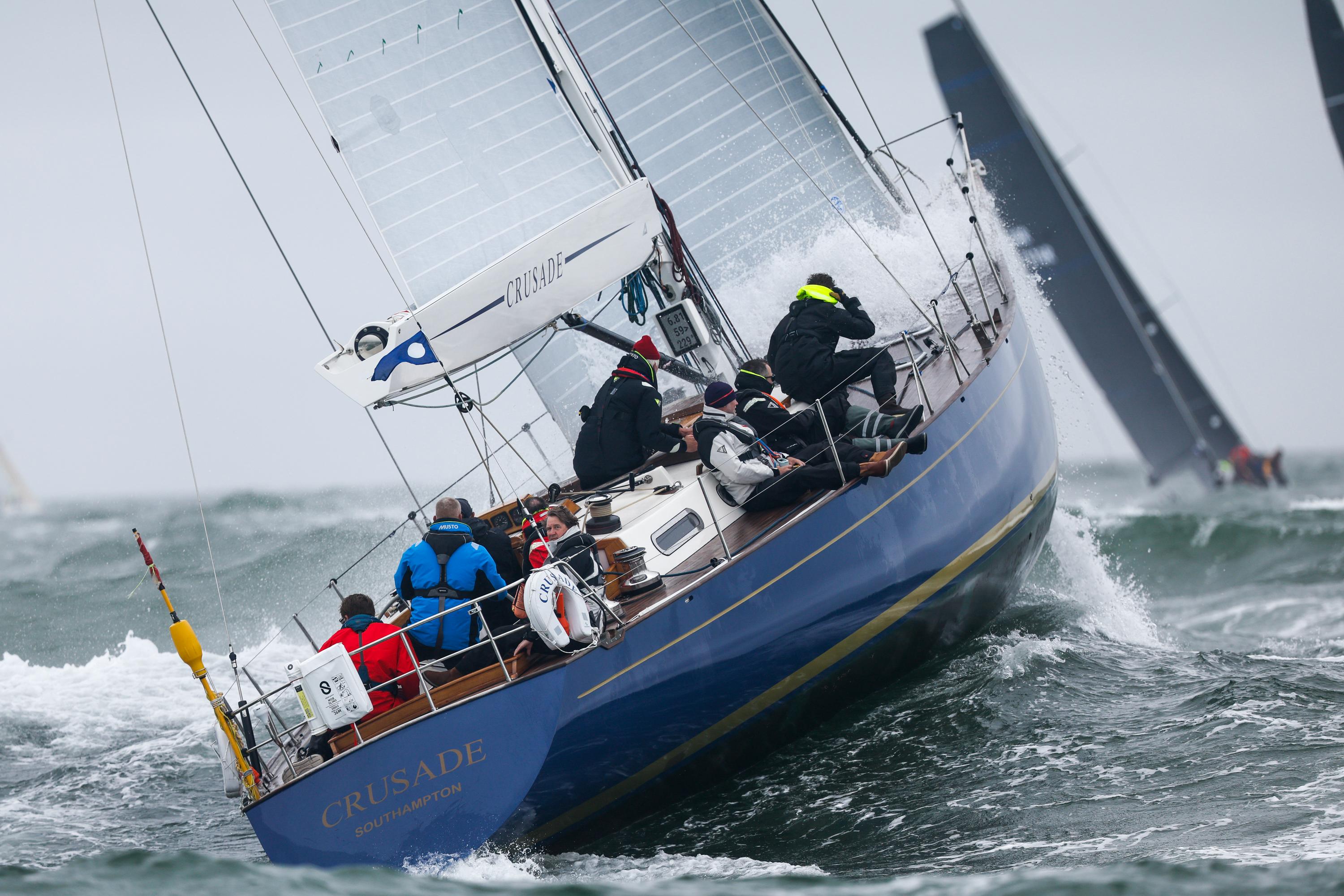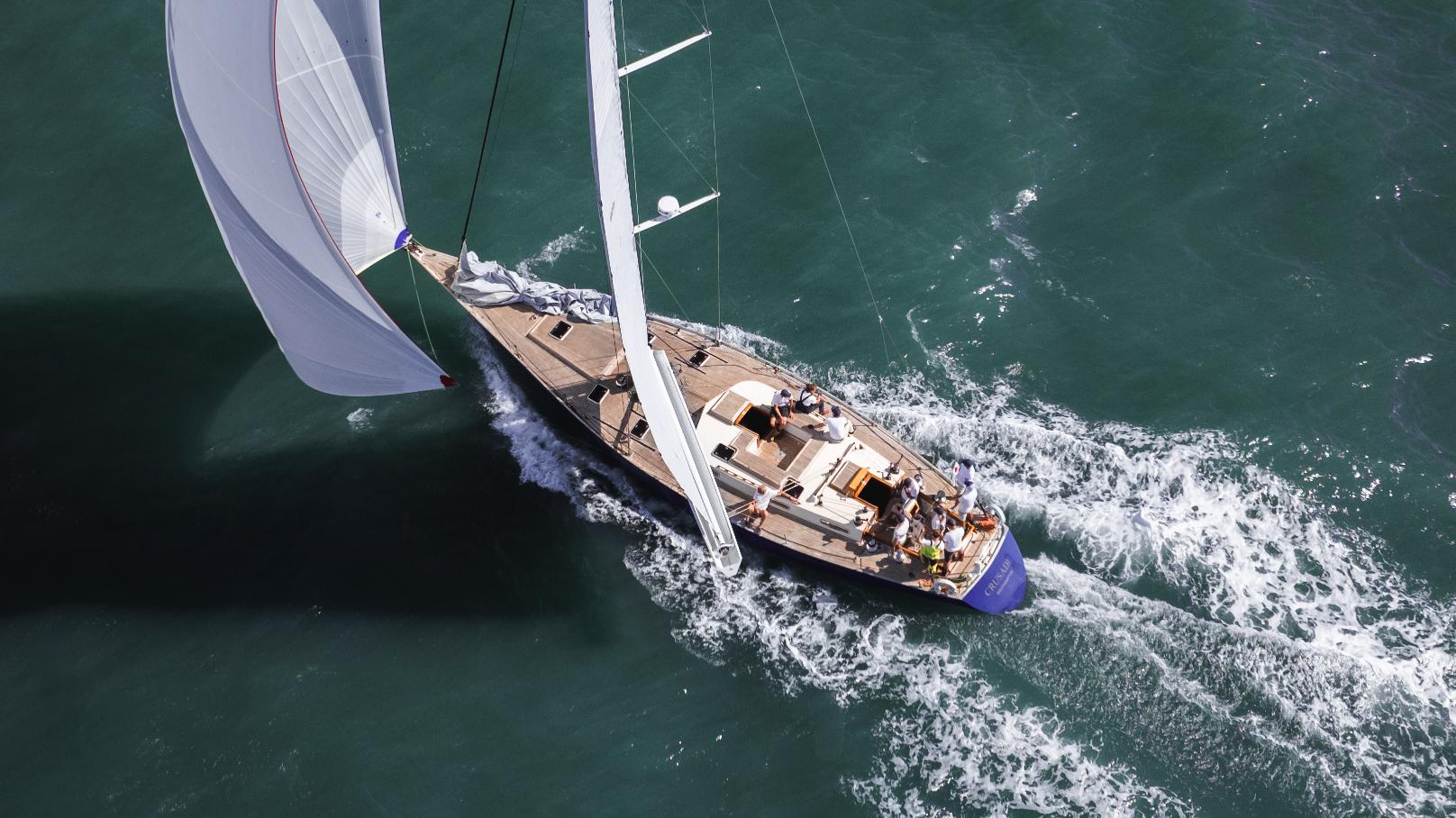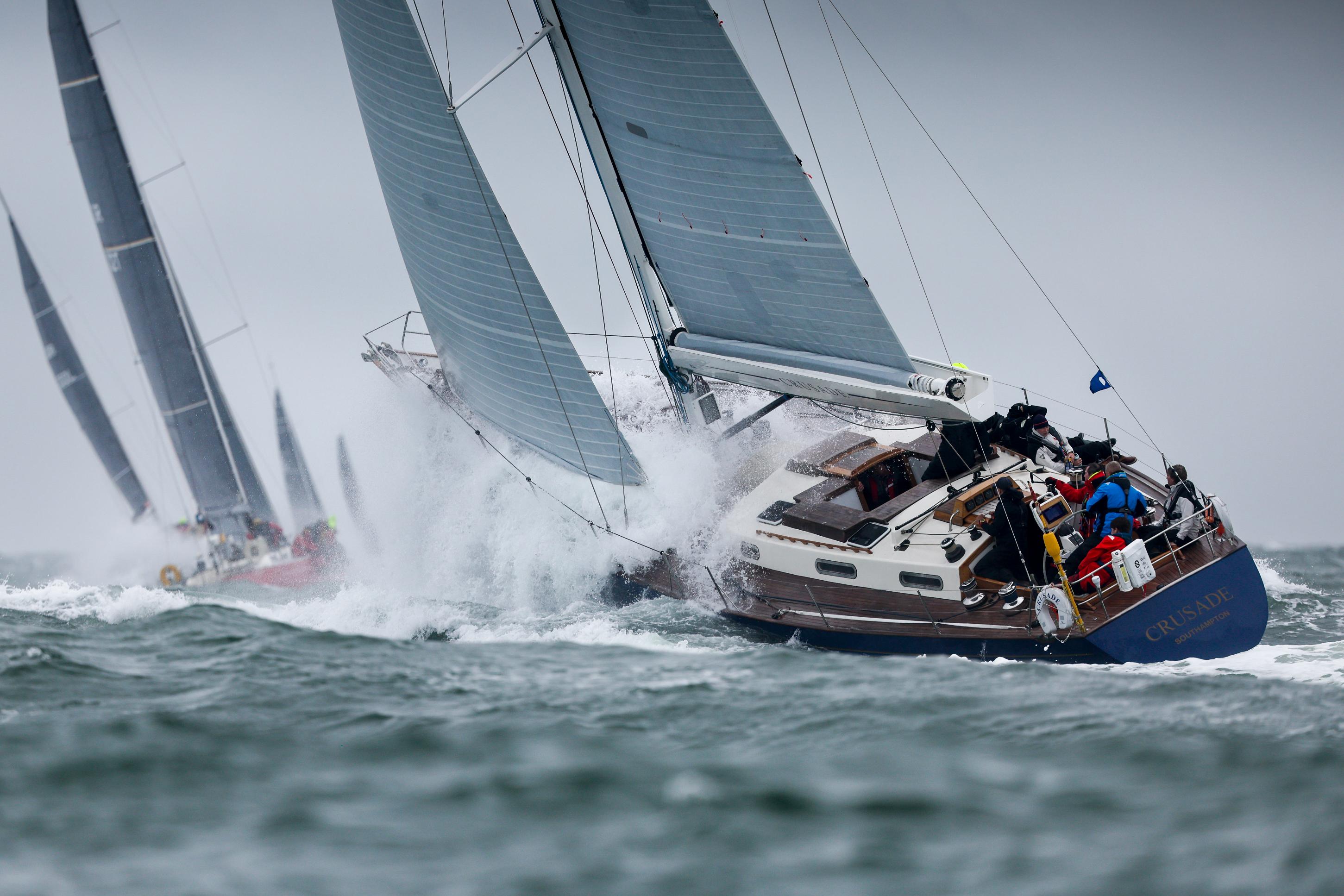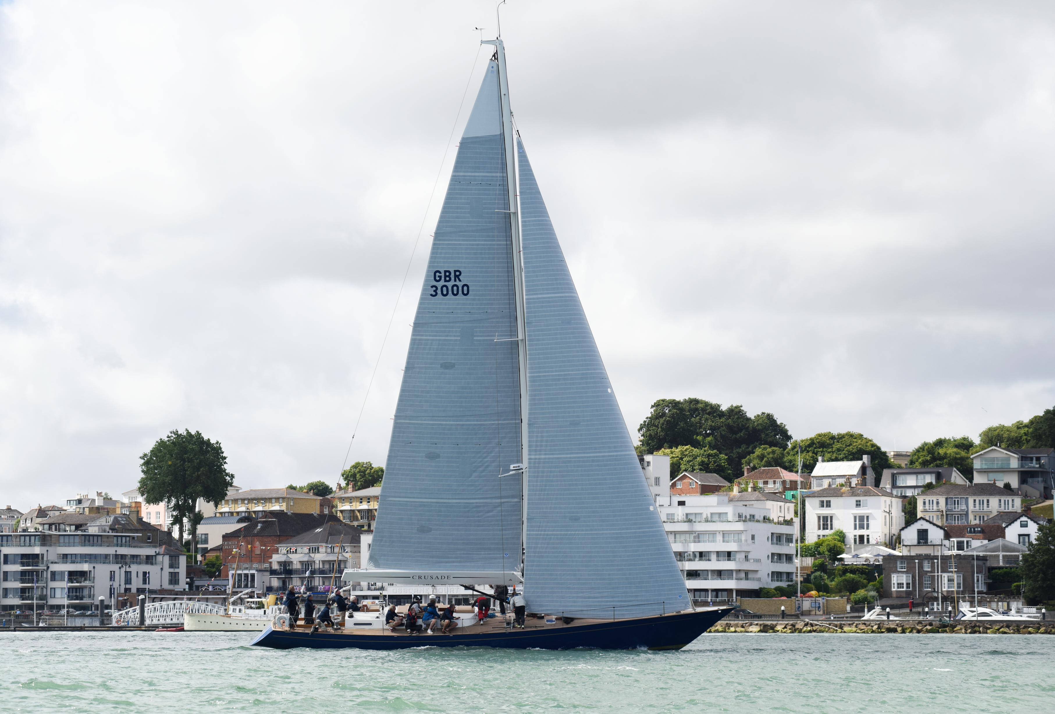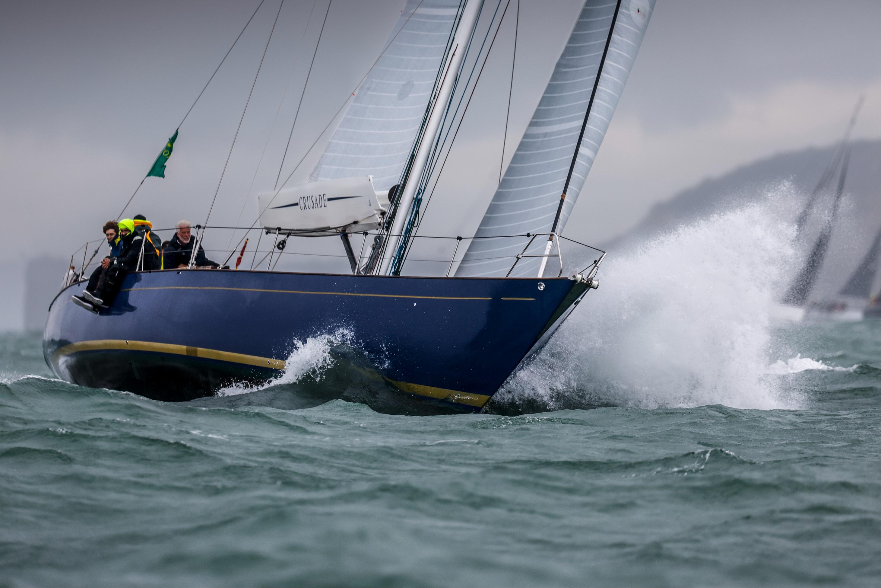 The 19.2m (64ft) pedigree racing yacht CRUSADE was launched in 1969 by Souters Yard in Cowes, Isle of Wight, and underwent extensive refits in 2011 and 2022, blending classic craftsmanship with modern performance. Commissioned by newspaper baron Sir Max Aitken and designed by renowned naval architect Alan Gurney, she was built using cold-moulded wood construction with laminated frames, a technique prized for its strength and lightweight agility.