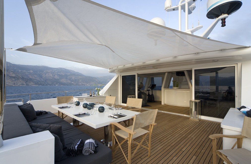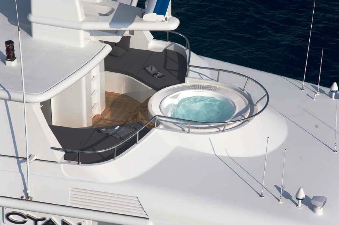 Codecasa was the naval architecture company involved in the technical vessel design work for CYAN. Also the company Codecasa skillfully collaborated on this project. Interior designer Studio Dellarole was commissioned for the internal interior ambience. Italy is the country that decasa Yachts built their new build motor yacht in. After her formal launch in 1997 in Viareggio she was passed over to the yacht owner having completed sea trials. A fairly large proportion is brought about with a widest beam (width) of 9.51 metres or 31.2 ft. With a 3m (9.8ft) draught (maximum depth) she is reasonably deep. The material steel was used in the building of the hull of the motor yacht. Her superstructure over the hull is created out of aluminium. In 2008 extra refitting and updating was also finished.