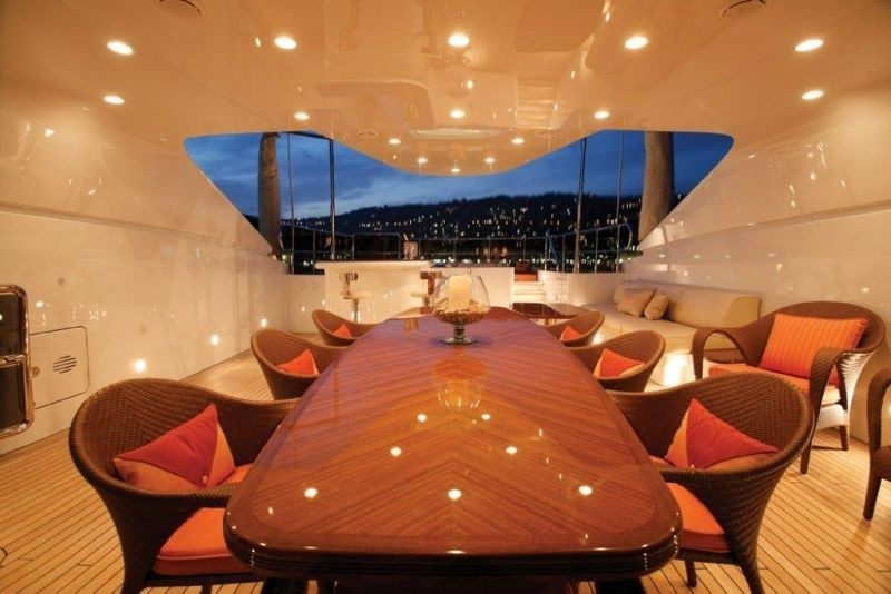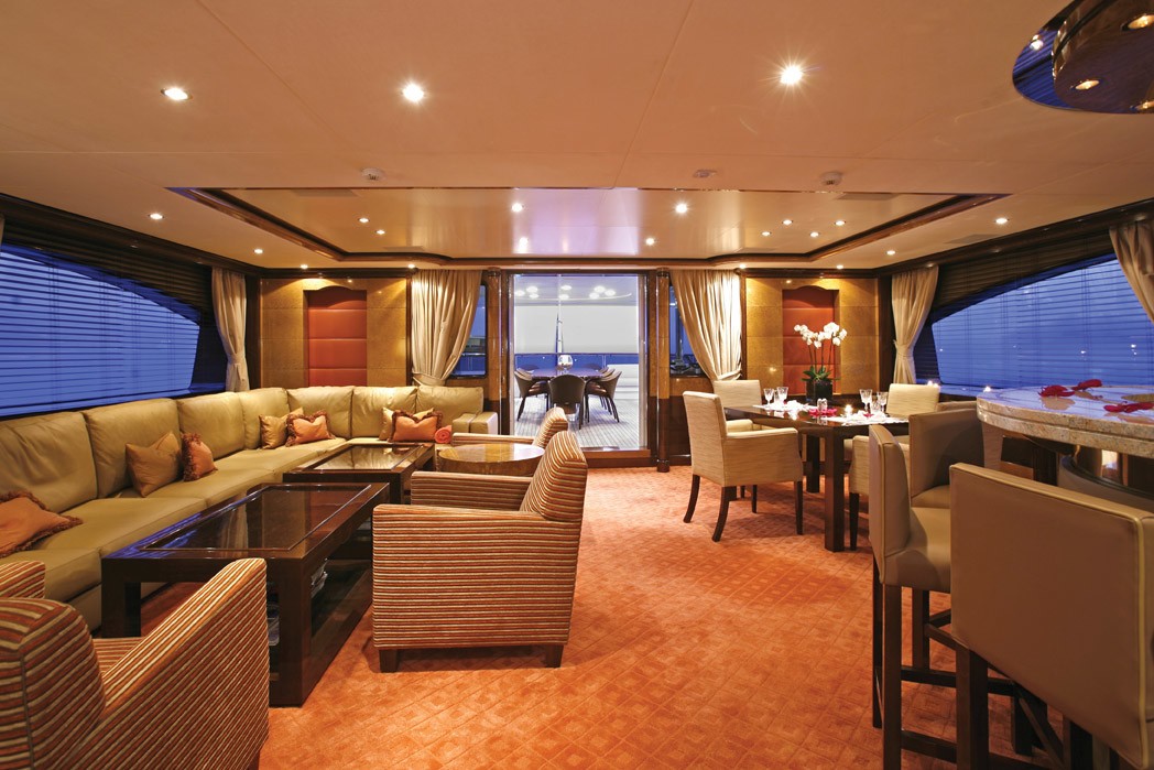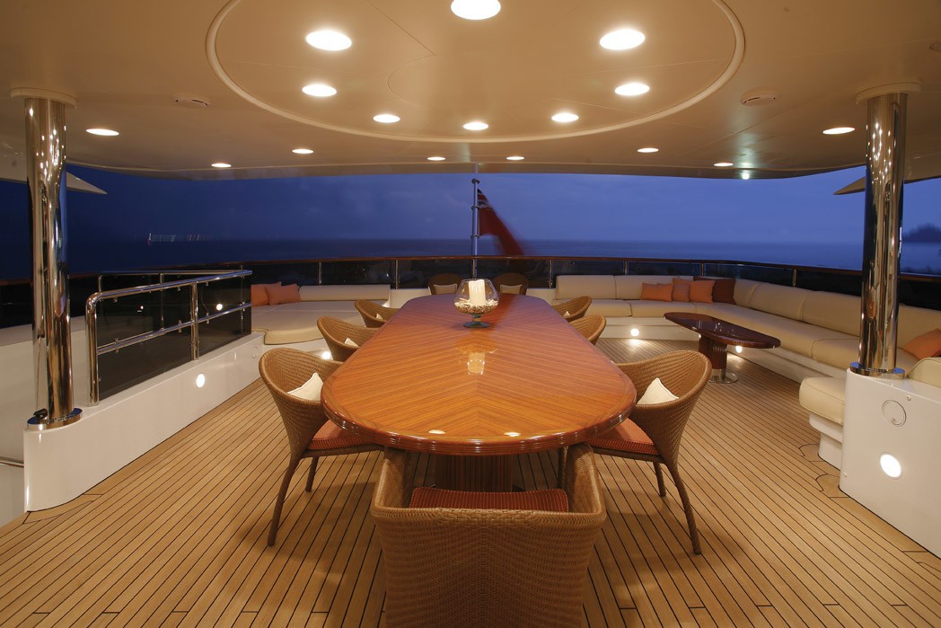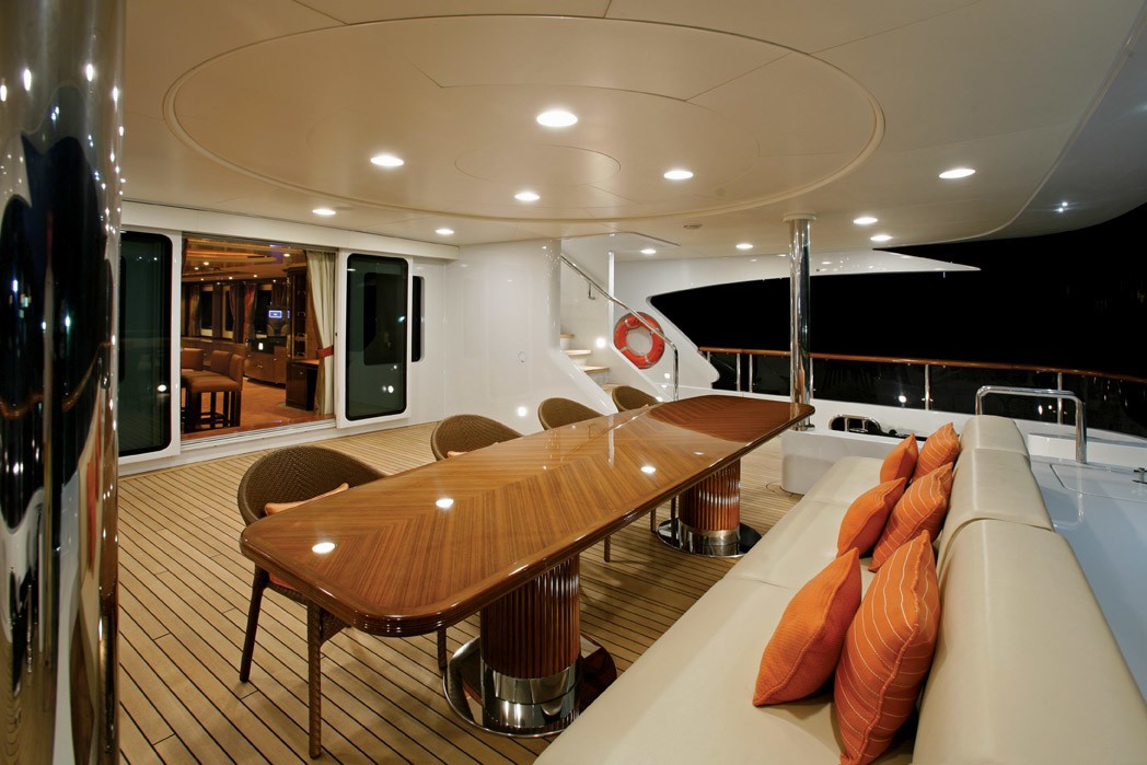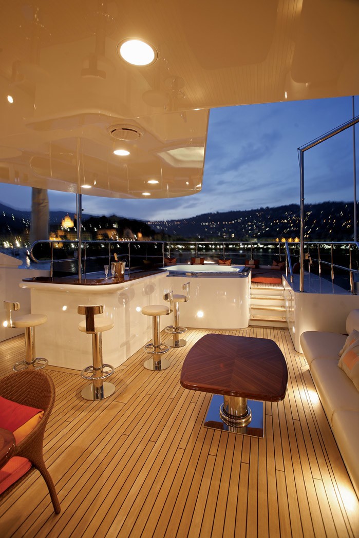Fratelli Benetti was the naval architect involved in the technical nautical design work for DIANE. Also the company Fratelli Benetti and Stefano Natucci skillfully collaborated on this project. Interior designer Stefano Natucci was commissioned for the overall interior styling. Created by Benetti Yachts the vessel was constructed within Italy. She was officially launched in Viareggio in 2007 before being delivered to the owner. A fairly large area is achieved with a total beam (width) of 8.9 m or 29.2 feet. With a 2.2m (7.22ft) draught (maximum depth) she is reasonably shallow. The material aluminium was used in the building of the hull of the motor yacht. Her superstructure over the hull is fashioned with the use of aluminium.