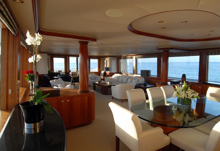 This boat sustains twin responsive MTU diesel engine(s) and can touch a thrilling maximum speed at 29 knots. The main engine of the ship produces 2735 horse power (or 2013 kilowatts). Her total HP is 5470 HP and her total Kilowatts are 4025. Coupled to the DONA LOLA engines are twin screw propellers (schaffran 5 blades). As for the yacht’s stabalisers she uses Naiad. Regarding bow thruster maneuverability she was fitted with Wesmar. This yacht’s express cruise speed is 24 knots which offers a range of 3450.