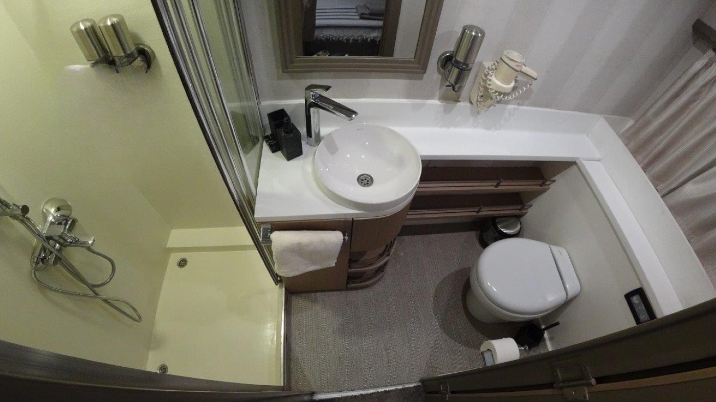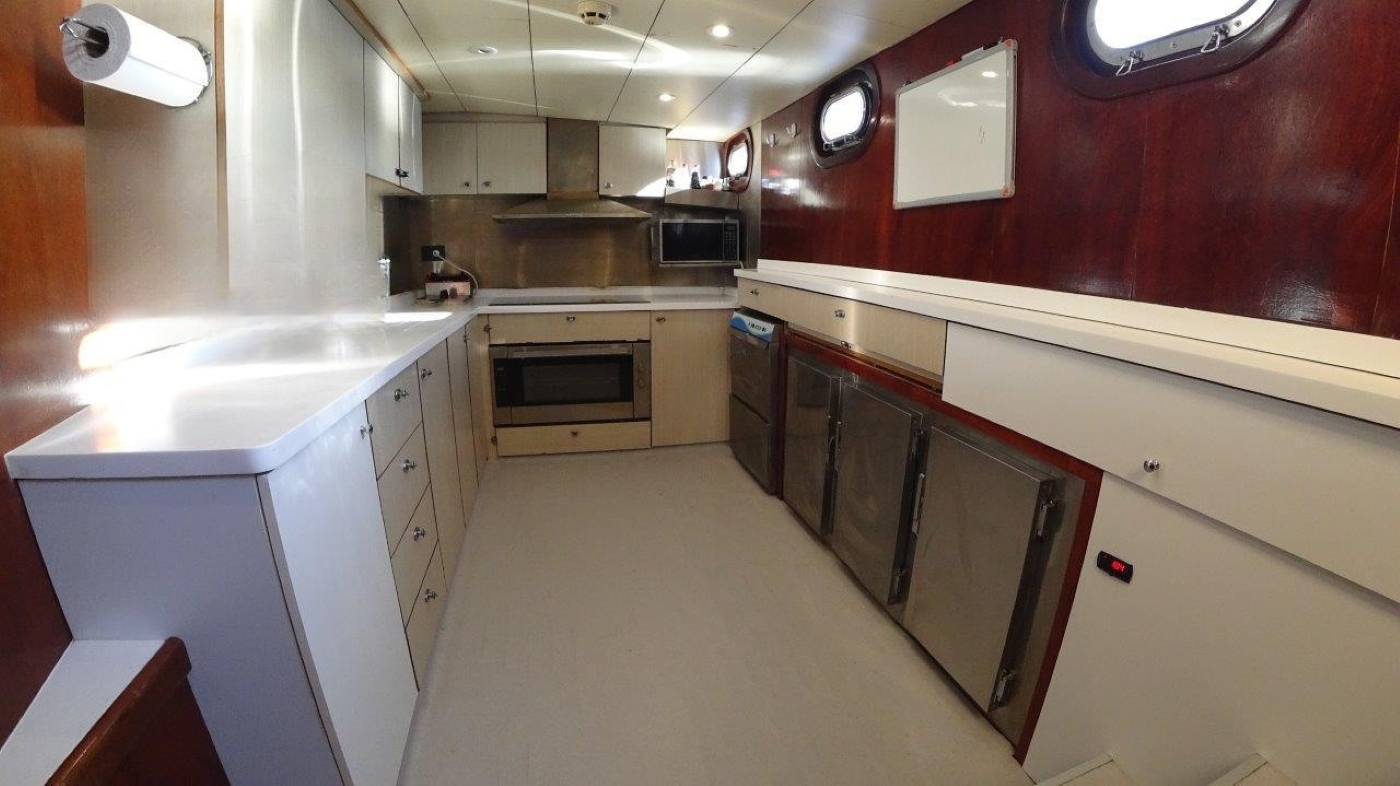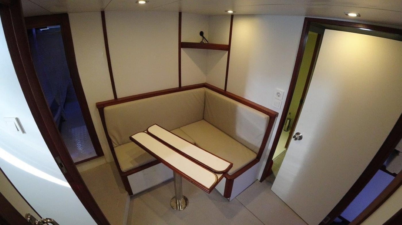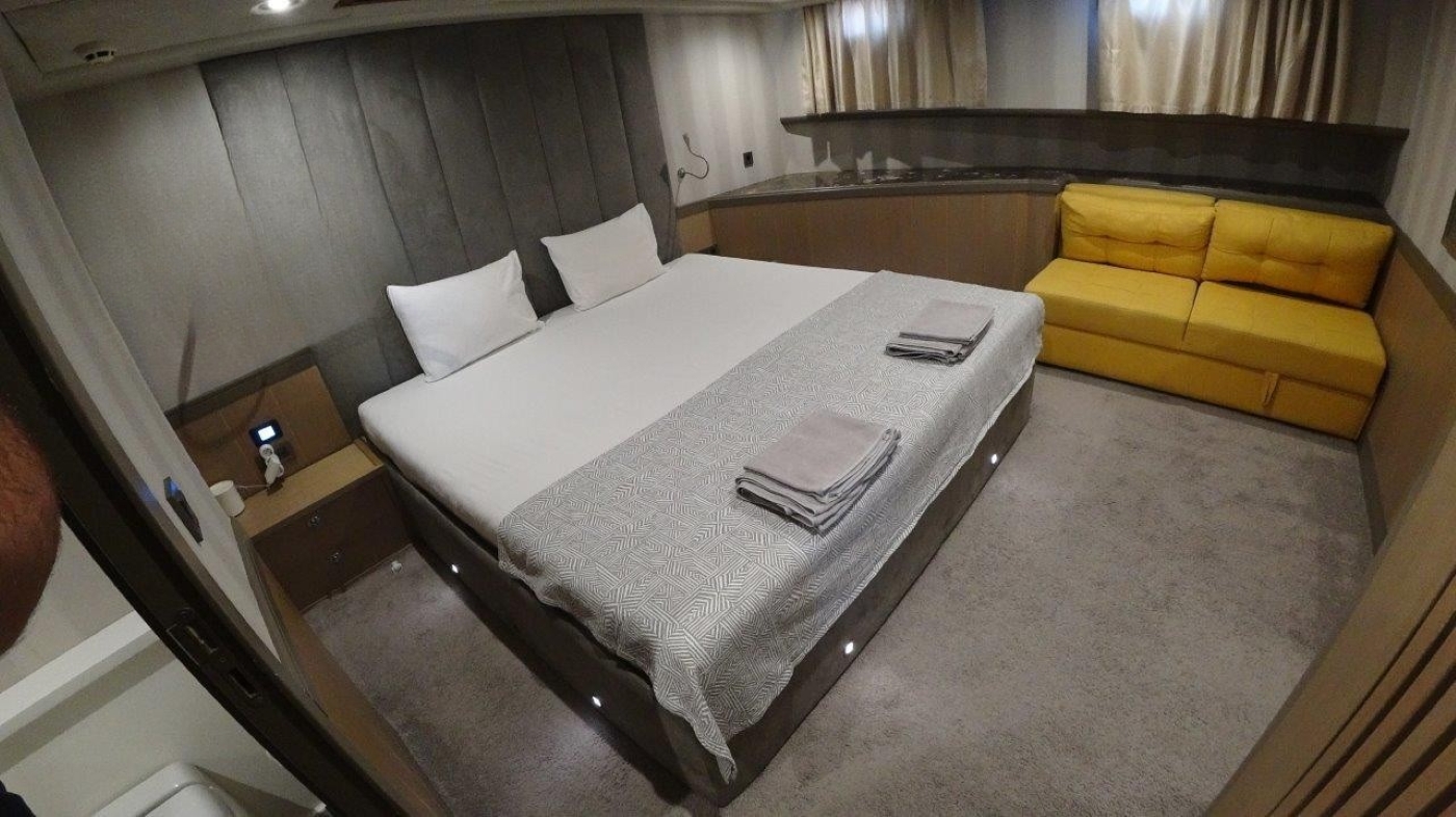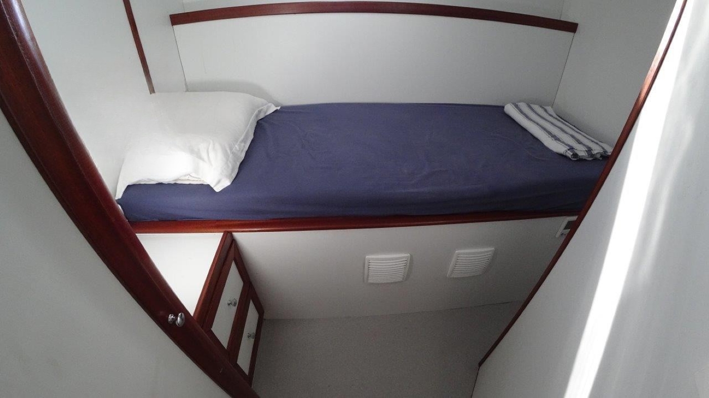 ~ Aft Master Cabin: King bed (200 x 200) + optional extra single (185 x 80), en suite ~ Bow Master Cabin: Queen bed (200 x 182), en suite ~ 2 Double Cabins: (190 x 160), both en suite ~ 1 Twin Cabin: Single beds (190 x 85), en suite