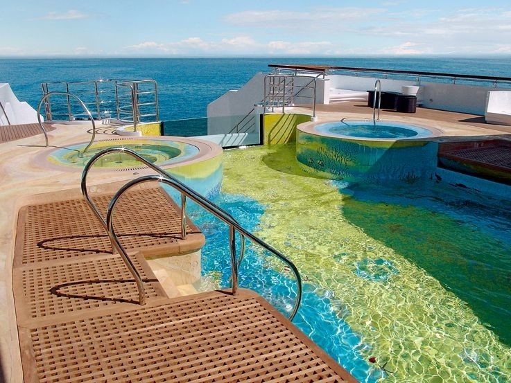 DUBAI yacht can comfortably sleep a total number of 24 guests. She features an owner’s suite, five VIP suites and six guest suites, all with open balconies. There are also crew cabins for 88 crew, including the captain, chief engineer and Doctor. DUBAI can host a total number of 115 persons, including crew and guest staff.