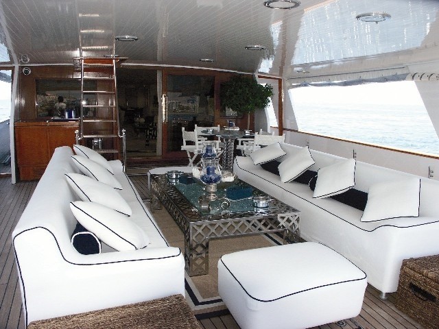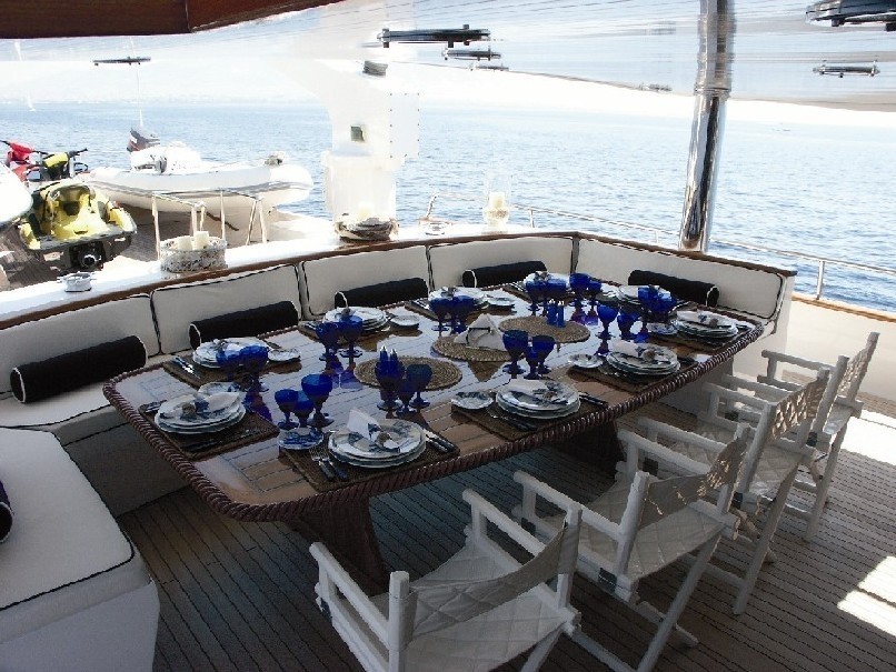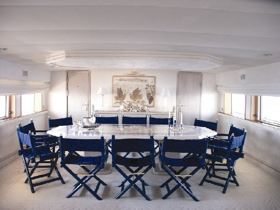 With quarters for a maximum of 14 yacht guests spending the night, the EL CHRIS accommodates them luxuriously. Under normal conditions she uses approximately 7 capable yacht crew to manage.
