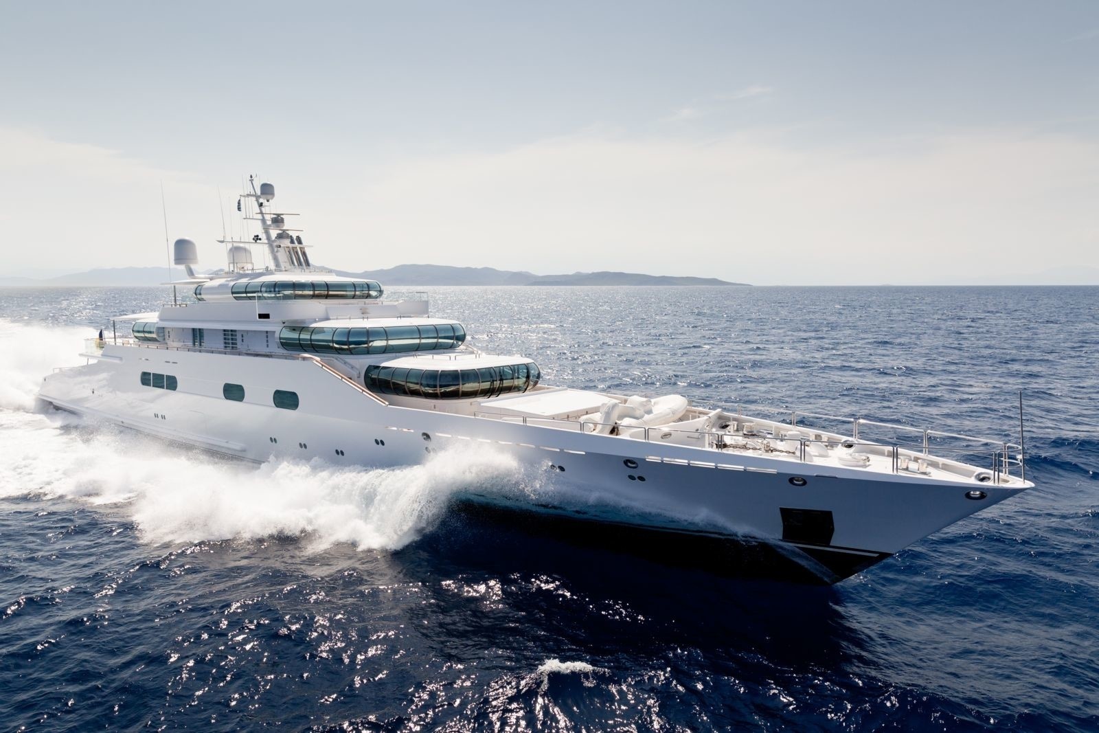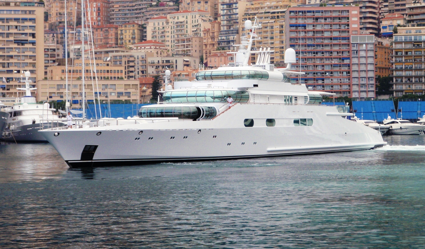 Motor yacht ENIGMA is famous because of the unique, almost naval frigate style, yacht design. Also, she has been one of the largest and certainly the fast private yachts for a very long time. ENIGMA was built by Blohm & Voss) for the Mexican magnate Emilio Azcarraga. The yacht was launched as ECO in 1998 and she was purchased by American Oracle boss Larry Ellison. She became ubiquitous at yacht racing regattas, such as the America’s Cup, after Mr. Ellison bought her and renamed her KATANA, a Japanese word. Still an all time favourite yacht for many, M/Y KATANA is powered by two diesels but also a gas turbine.