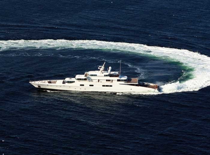 The B16VM628/LM 1600 engine installed in the motor yacht is built by DEUTZ-MWM/GEC. Connected to her Deutz-Mwm/GEC engine(s) are tripple water jets (kamewa). The engine of the ship produces 5005 horse power (or 3683 kilowatts). She is equiped with 2 engines. The sum thrust for the yacht is 28510 HP / 20979 KW. With respect to stabalisers she was built with Blohm + Voss. The bow thrusters are Brunvoll.