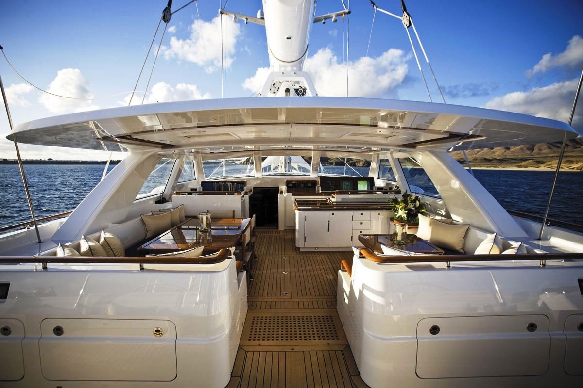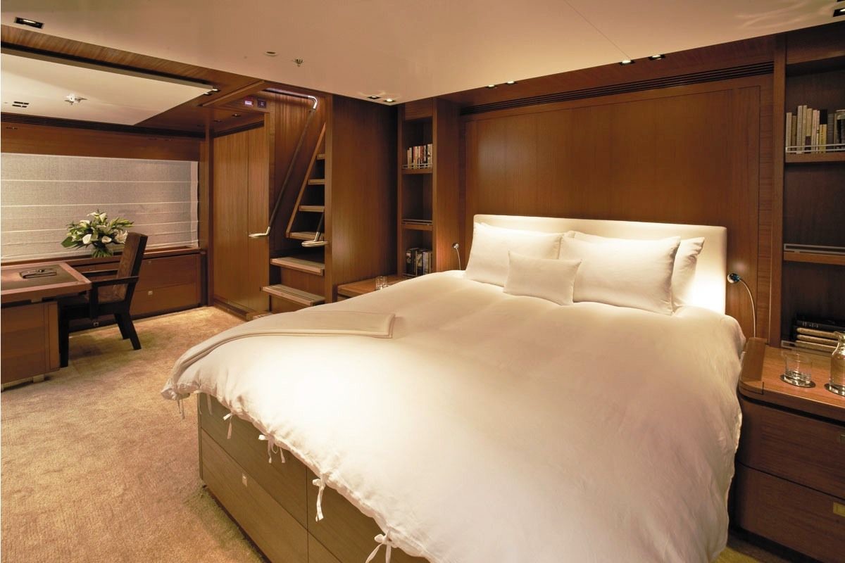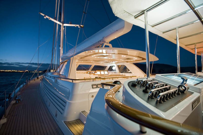 Ron Holland Design was the naval architect involved in the technical vessel design work for ETHEREAL. Her interior design was conceived by Pieter Beeldsnijder Design. Ron Holland Design and Pieter Beeldsnijder Design is also associated with the yacht general design work for this yacht. the Netherlands is the country that Royal Huisman constructed their new build sailing yacht in. After her formal launch in 2008 in Vollenhove the boat was afterwards handed over to the yacht owner after sea trials. A spacious feeling is brought about with a total beam (width) of 11.42 m / 37.47 feet. With a 4.9m (16.08ft) draught (maximum depth) she is fairly deep. The material alustar was used in the building of the hull of the sailing yacht. Her superstructure over the hull is created from alustar.